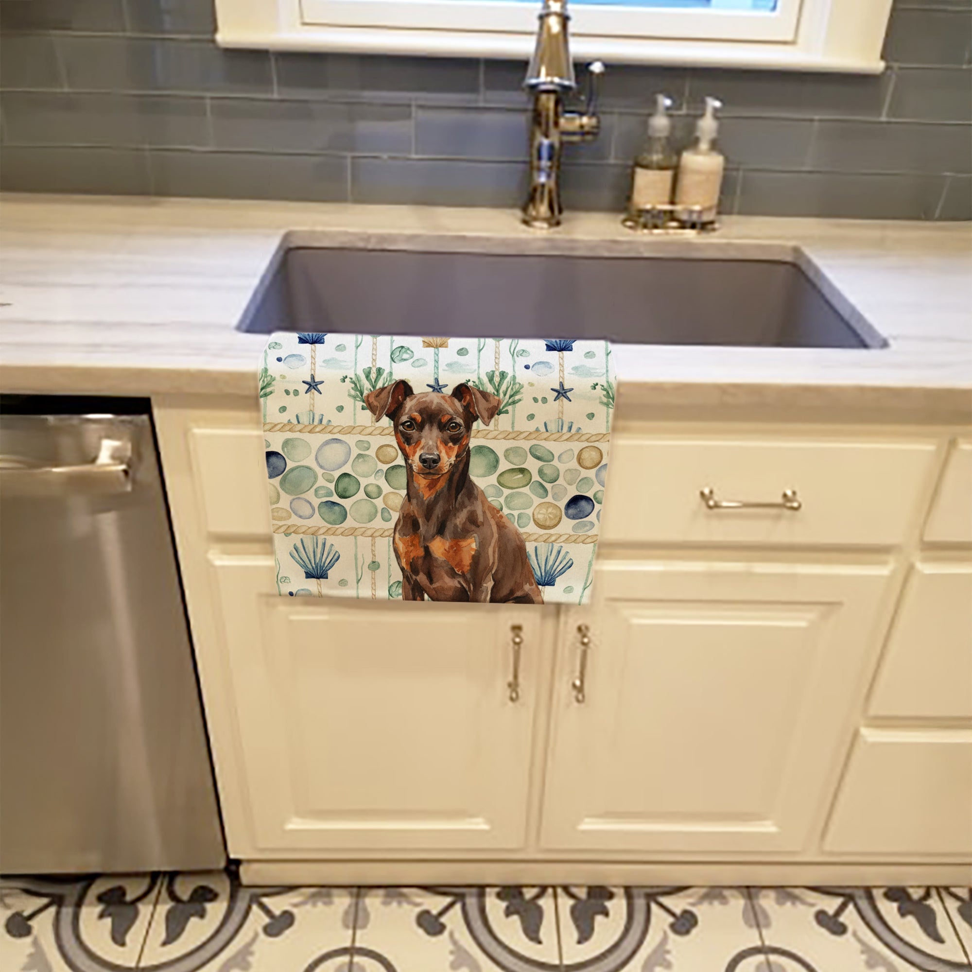 Chocolate and Rust Miniature Pinscher Min Pin Coastal Sea Glass Kitchen Towel