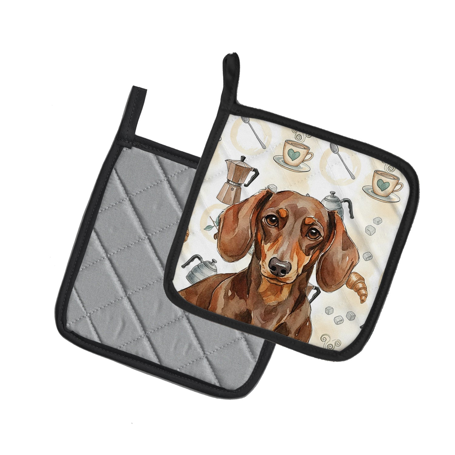 Chocolate and Tan Dachshund Coffee Bar Pair of Pot Holders