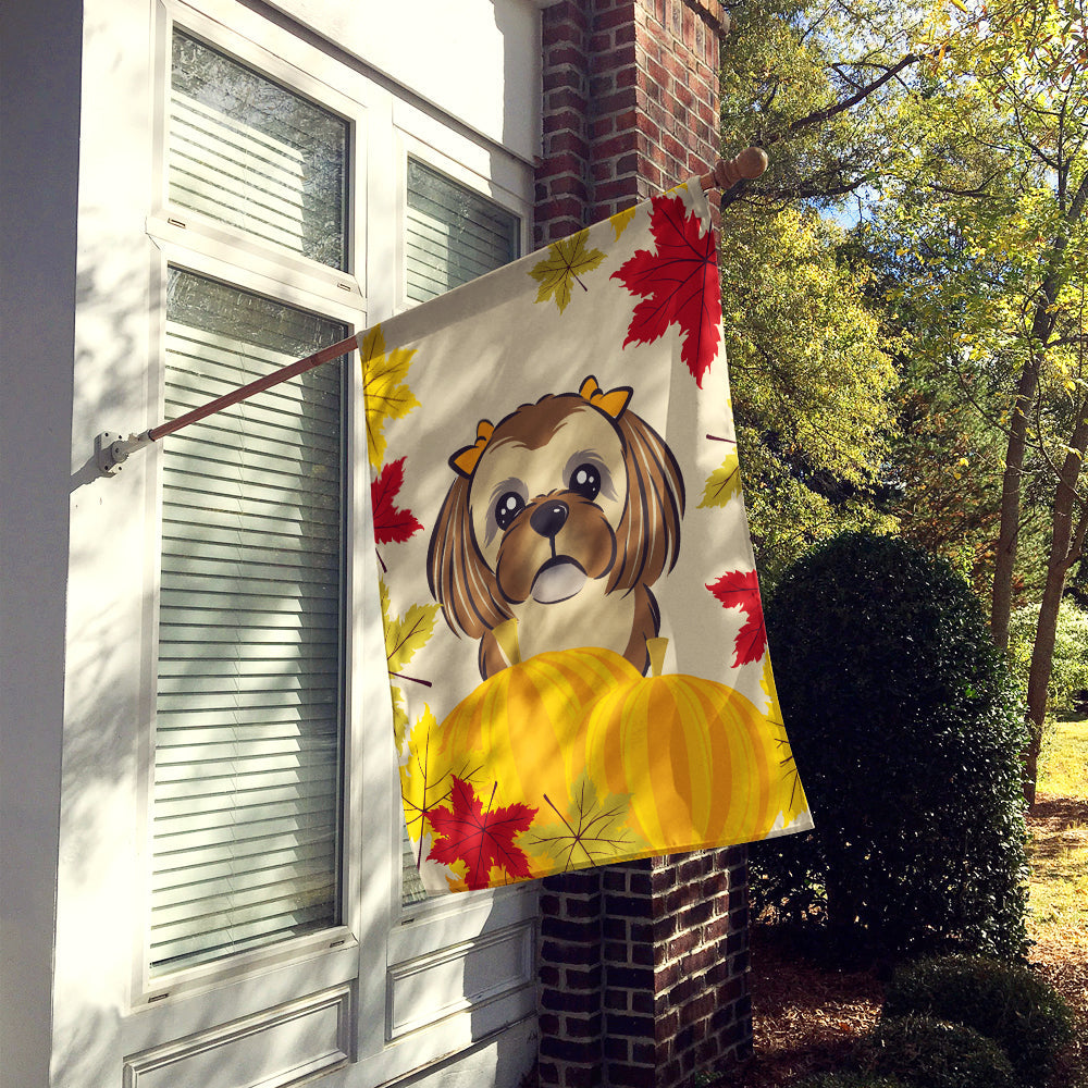 Decorate your space with our Thanksgiving Shih Tzu artwork on a Large Flag. Presenting our Heavy Duty Polyester House Size Decorative Sleeve Pole Flag, a vibrant addition to enhance the aesthetic appeal of your home. This large decorative flag, measuring approximately 28 x 40 inches, offers ample coverage and visibility. Each flag is meticulously sewn and made individually, ensuring a unique piece that may slightly vary in size. It's a sleeve pole flag, designed to fit a standard decorative flag pole effortlessly. Please note that the flag pole and bracket are not included and should be purchased separately. What sets our flag apart is its dual-sided print. The design is mirrored on both sides of the fabric, allowing for uniform visibility regardless of the angle. Printed in full color, our flag showcases vibrant hues that truly stand out. To ensure lasting vibrancy and durability, the dyes are heat-set into the fabric. This ensures your flag remains bright and captivating through various weather conditions. Elevate the look of your home with our Heavy Duty Polyester House Size Decorative Sleeve Pole Flag!