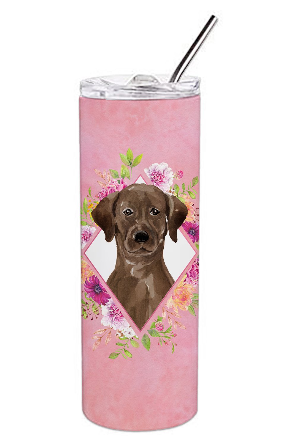 Chocolate Labrador Pink Flowers Double Walled Stainless Steel 20 oz Skinny Tumbler CK4251TBL20