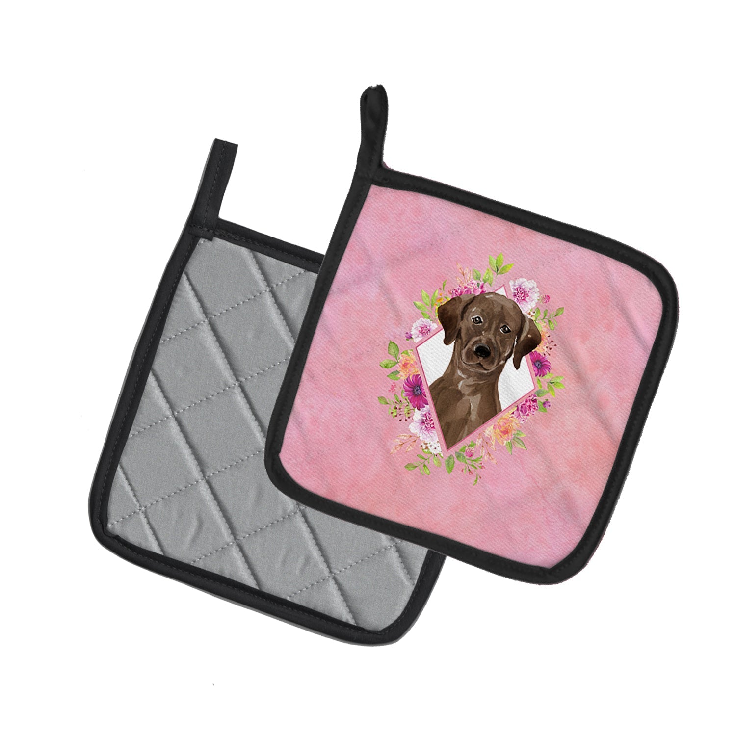 Decorate your space with our Labrador Retriever artwork on a Pair of Pot Holders. A Pair of Pot Holders to match your kitchen decor. Made in the USA these are thick and functional. Full color artwork decorates the front polyester fabric of the hot pad and accented by a black trim. Use these at as a trivet for your Thanksgiving or Christmas tablescape. Filled with insulated fabric and quilted for durability. These colorful pot holders will make a great gift for your favorite home cook or executive chef. Each pot holder measures approximately 7 1/2 inches by 7 1/2 inches. A hanging tab is included.