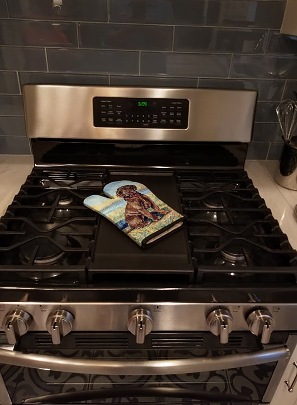 Decorate your space with our Labrador Retriever artwork on a Oven Mitt. Presenting our Large Right Hand Thick Heat Resistant Oven Mitt, an indispensable tool for any culinary enthusiast. This mitt boasts layers of quilted protection on both sides, providing outstanding resistance against extreme heat. Embellished with beautifully printed artwork, it adds an extra dash of charm to your kitchen decor. At about 12 inches long and 8 1/2 inches wide, this oven mitt offers a generous fit, accommodating a diverse range of hand sizes. Its design is enhanced by a sleek Black bias tape trim, finished with a convenient hoop for easy hanging. Fresh out of the packaging, the quilting process may give the mitt a stiff feel, but rest assured, it will soften with use and washing. Our mitt is crafted with a unique center fabric, Insul-Bright, a composite material made from polyester fibers, needle-punched through a nonwoven substrate and a reflective metallized film. This smart material resists both conduction and radiant energy, reflecting heat back to its source, all while remaining breathable. Our oven mitt is machine washable and safe for tumble drying. It's a perfect gift for your favorite Chef, BBQ enthusiast, or just a little treat for yourself! Experience safety, style, and convenience rolled into one with this exceptional oven mitt.
