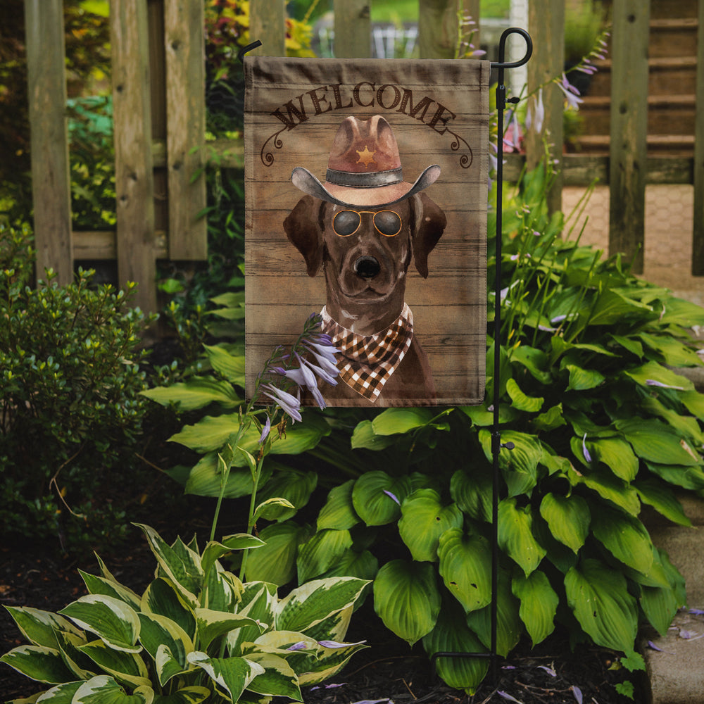 Chocolate Labrador Retriever Cowboy Dog Welcome Garden Flag – Western-Style Dog with Hat & Sunglasses CK6297GF