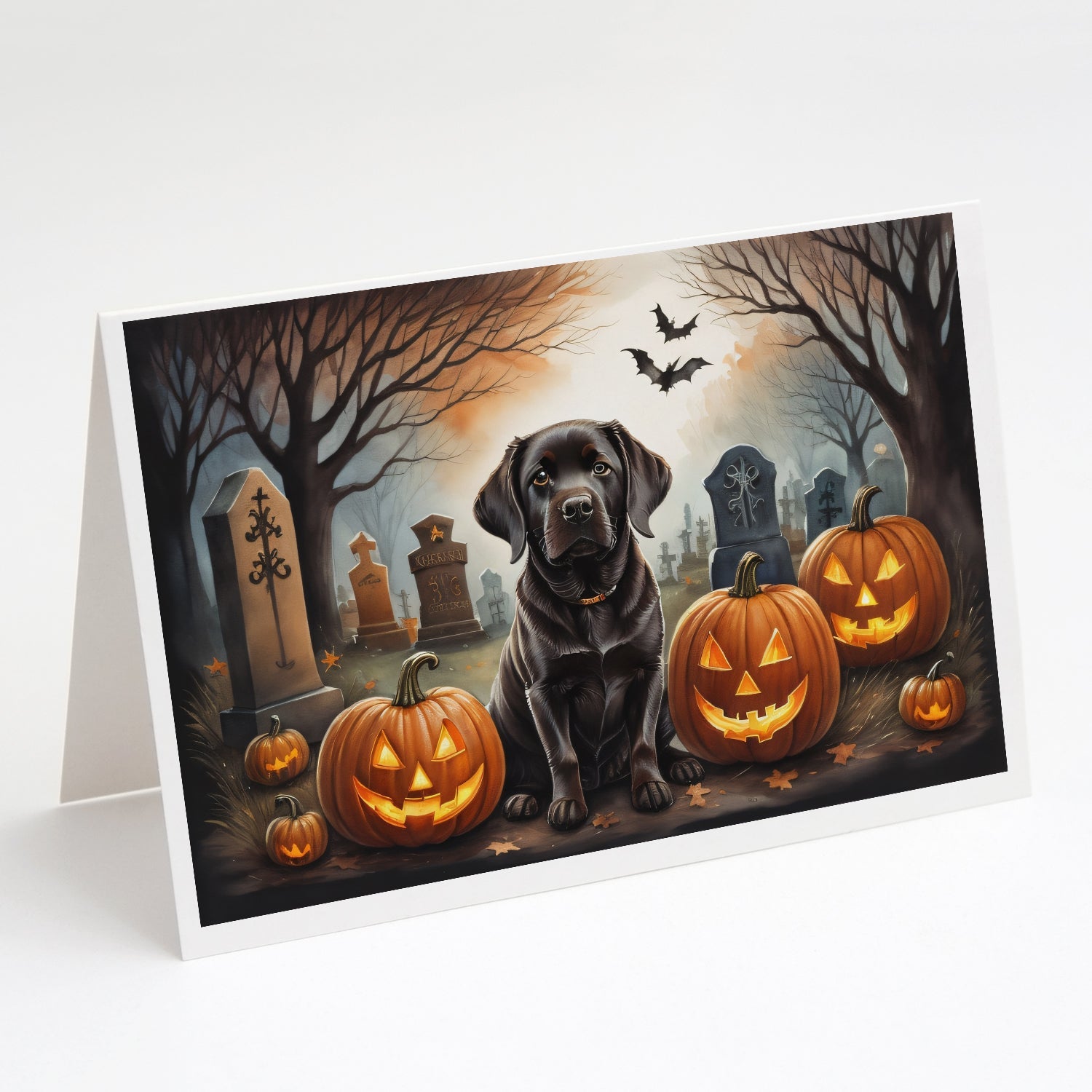 Chocolate Labrador Retriever Spooky Halloween Greeting Cards -  Blank Note Cards – 8-Pack of Artist-Designed Cards with Envelopes