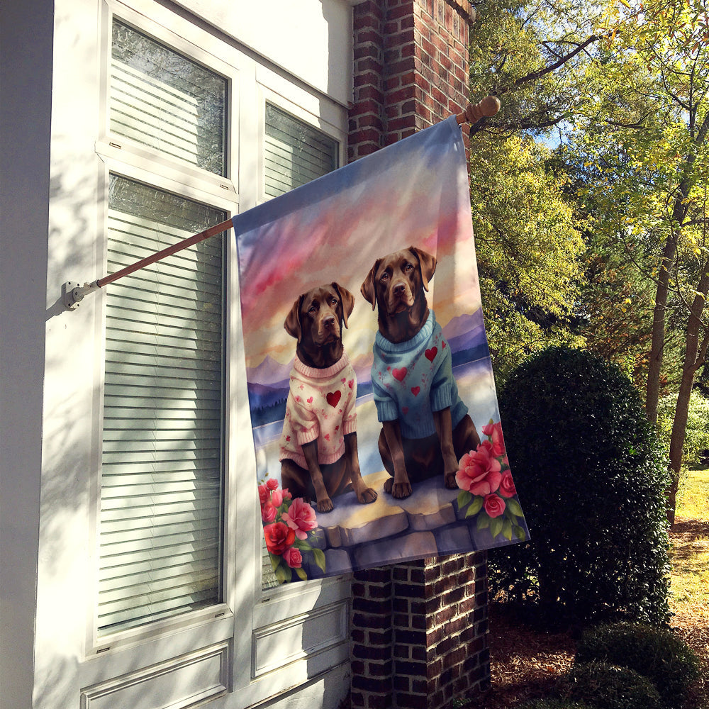 Decorate your space with our Valentine's Day Labrador Retriever artwork on a Large Flag. Presenting our Heavy Duty Polyester House Size Decorative Sleeve Pole Flag, a vibrant addition to enhance the aesthetic appeal of your home. This large decorative flag, measuring approximately 28 x 40 inches, offers ample coverage and visibility. Each flag is meticulously sewn and made individually, ensuring a unique piece that may slightly vary in size. It's a sleeve pole flag, designed to fit a standard decorative flag pole effortlessly. Please note that the flag pole and bracket are not included and should be purchased separately. What sets our flag apart is its dual-sided print. The design is mirrored on both sides of the fabric, allowing for uniform visibility regardless of the angle. Printed in full color, our flag showcases vibrant hues that truly stand out. To ensure lasting vibrancy and durability, the dyes are heat-set into the fabric. This ensures your flag remains bright and captivating through various weather conditions. Elevate the look of your home with our Heavy Duty Polyester House Size Decorative Sleeve Pole Flag!