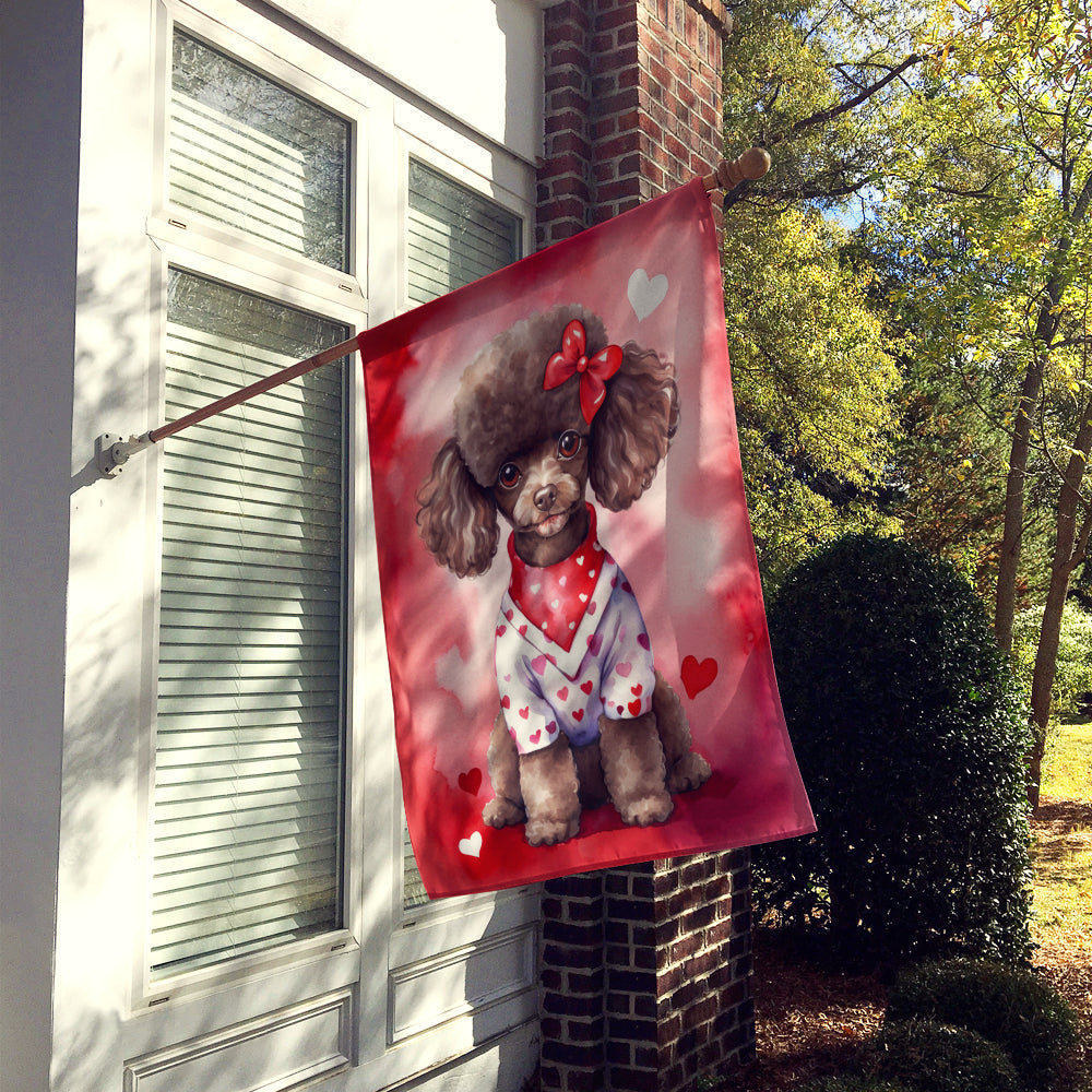 Chocolate Poodle My Valentine House Flag