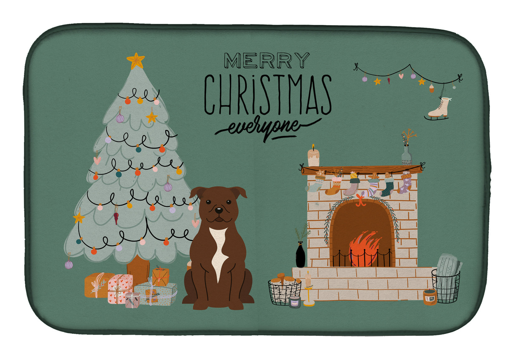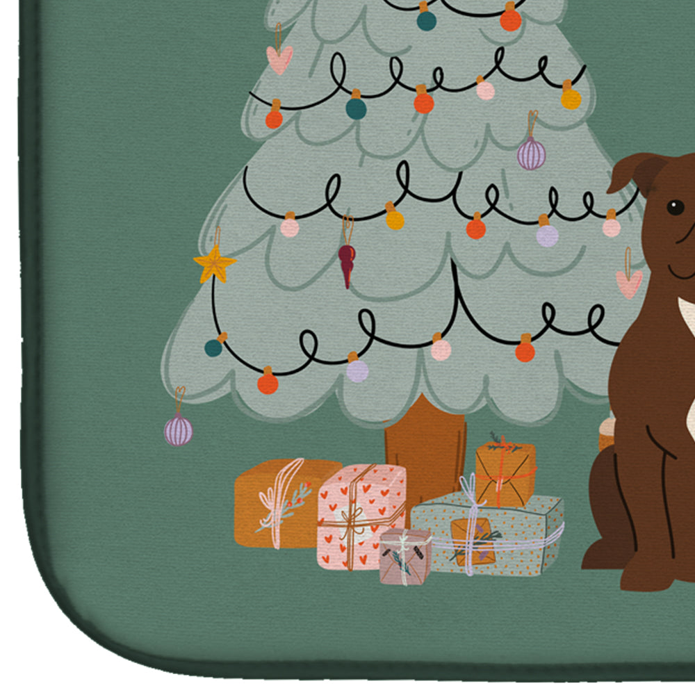 Chocolate Staffordshire Bull Terrier Christmas Everyone Dish Drying Mat – Absorbent, Artistic Kitchen Essentials CK7611DDM