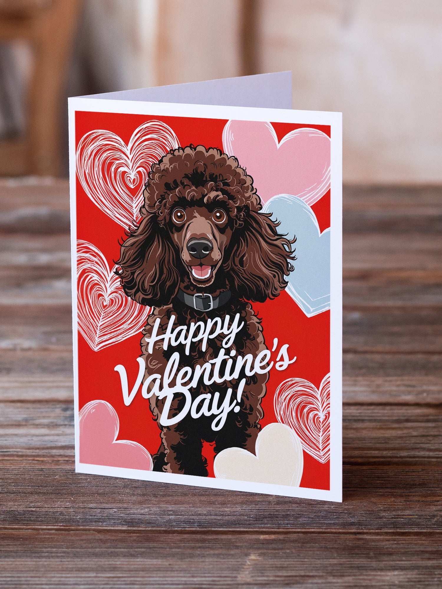 Chocolate Standard Poodle Happy Valentine's Day Greeting Cards - Blank Note Cards – 8-Pack of Artist-Designed Cards with Envelopes
