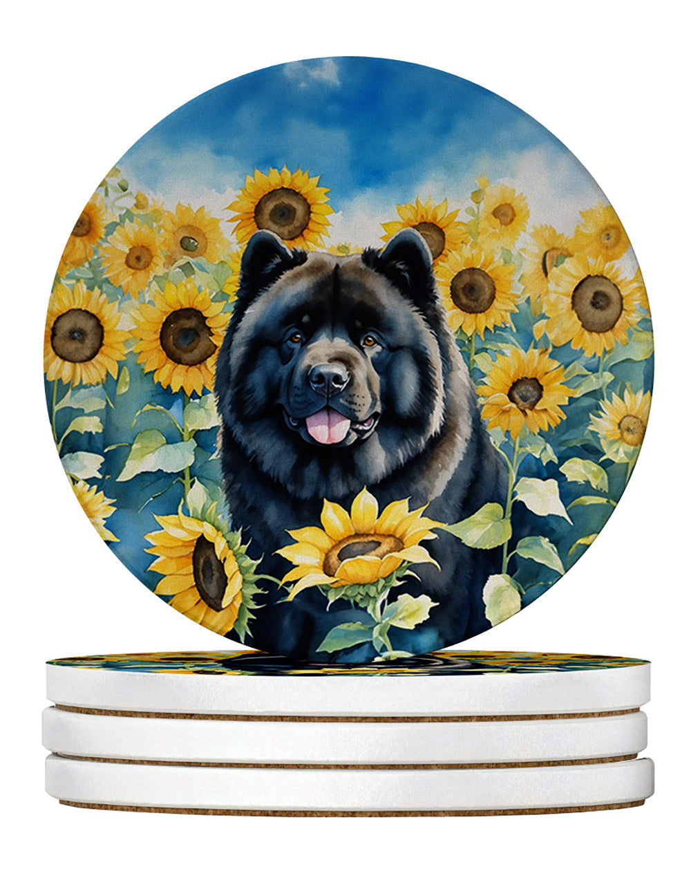 Large Sandstone Coasters Pack of 4 featuring breed specific Chow Chow artwork. Introducing Caroline's Treasures Large Sandstone Coasters Pack of 4, the perfect addition to your home decor. Each coaster measures nearly 4 inches and is made from absorbent sandstone with a cork backing. Designed and printed in the United States, these coasters feature artwork from Caroline's Treasures' talented artists. Protect your countertops and tables from hot and cold drink condensation with these absorbent coasters. They efficiently absorb moisture, ensuring your surfaces stay dry and clean. Choose from a wide range of designs to update and enhance your decor or give them as a thoughtful gift for any occasion. Cleaning is a breeze—simply wipe the coaster with a damp towel to remove any spills or stains. Each set comes in a brown gift box, making it ready to be wrapped for that special person in your life. These absorbent sandstone coasters also make an excellent housewarming gift, providing both practicality and style. Celebrate birthdays, Mother's Day, Father's Day, Thanksgiving, Christmas, Teacher's Appreciation Day, or simply show someone you care with these versatile and charming coasters. Caroline's Treasures Large Sandstone Coasters Pack of 4 is the perfect happy gift for any occasion.