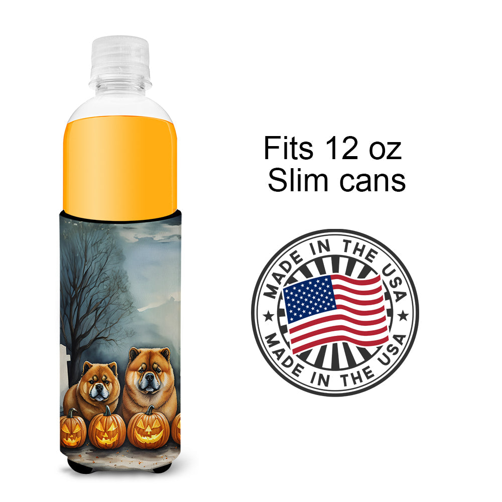 Decorate your space with our Halloween Chow Chow artwork on a Slim Can Hugger. Elevate your beverage experience with our Slim Can Huggers, uniquely designed to fit a variety of your favorite 12 oz slim cans. Perfectly suited for Michelob Ultra, Starbucks Refreshers, Heineken Light, Bud Lite Lime, Dry Soda, Coors, Resin, Vitaminwater Energy, and Perrier Cans, our huggers ensure your drink stays refreshingly cool. The feature that sets our can huggers apart is the striking full-color artwork, exclusively created by one of our talented artists. It adds a touch of individuality and style to your drink, making it easier to identify in a crowd. A unique blend of practicality and flair, these huggers are an absolute must-have at any gathering. Our can huggers are not just beautiful but also incredibly durable. The design won't fade or peel off, and they can be safely cleaned in a washing machine. These collapsible beverage insulators are easy to store and transport, making them perfect for all occasions. Enjoy your drinks in style and comfort with our exceptional Slim Can Huggers.