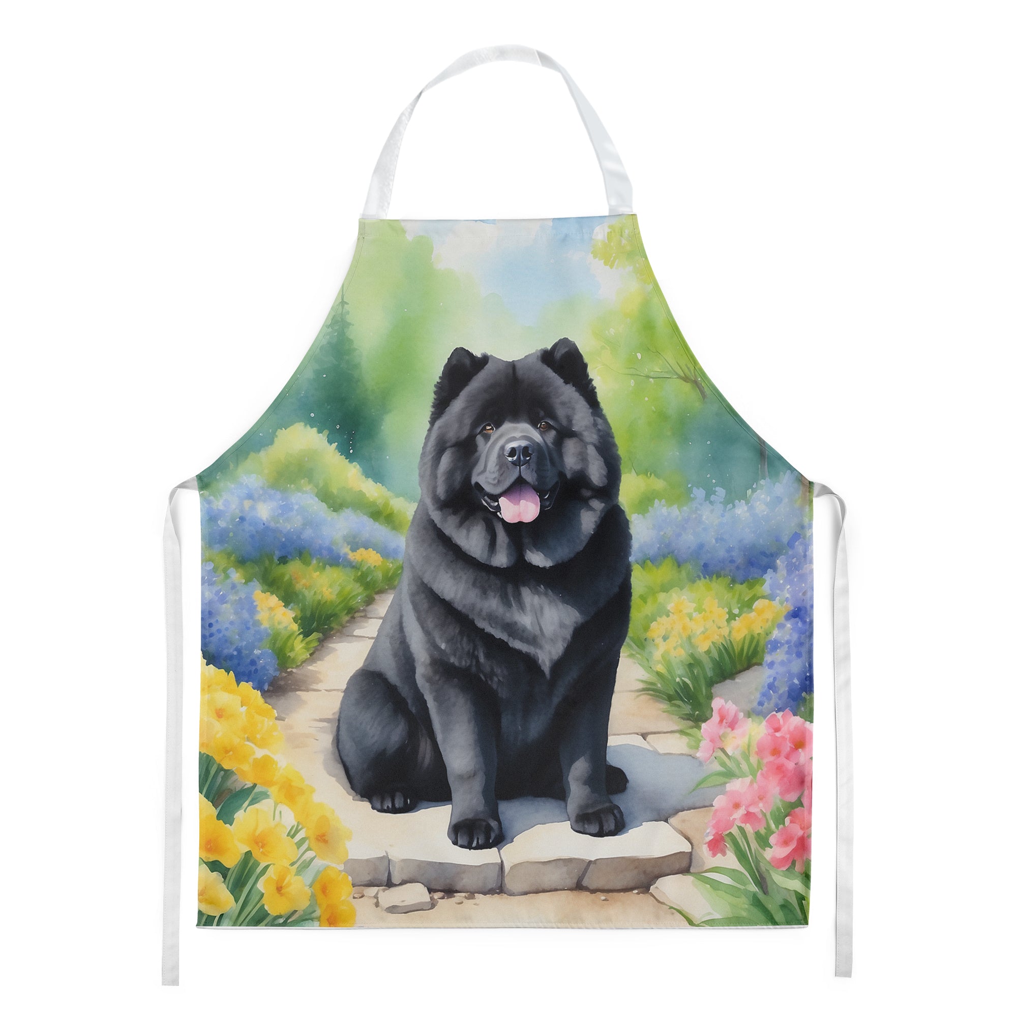 Decorate your space with our Chow Chow artwork on a Apron. Bring a bit of Spring into your home with a Spring Apron. Elevate your cooking, baking, and grilling experiences with our versatile Kitchen or BBQ Apron. This Bib Style apron isn't just limited to culinary activities - it also serves as an excellent baking apron, artist apron, server apron, gardening apron, or even a dog grooming apron. The apron showcases vibrant full-color artwork contributed by one of our talented artists, bringing a dash of style to your daily tasks. With dimensions of approximately 27"W x 30"H, it provides ample coverage to protect your clothing from spills and splashes. Our apron is meticulously crafted from 100% Ultra Spun Polyester, known for its durability and lightweight nature. The apron comes with white tie straps, ensuring a comfortable and adjustable fit for all. It's a perfect choice for kitchen apron enthusiasts, whether you are a woman or a man. Designed for easy maintenance, this apron is fully machine washable. The quick-drying polyester material actively reduces staining, keeping your apron looking fresh and new for longer. Our beautifully designed apron isn't just a functional kitchen accessory - it's a fashion statement in the culinary world!