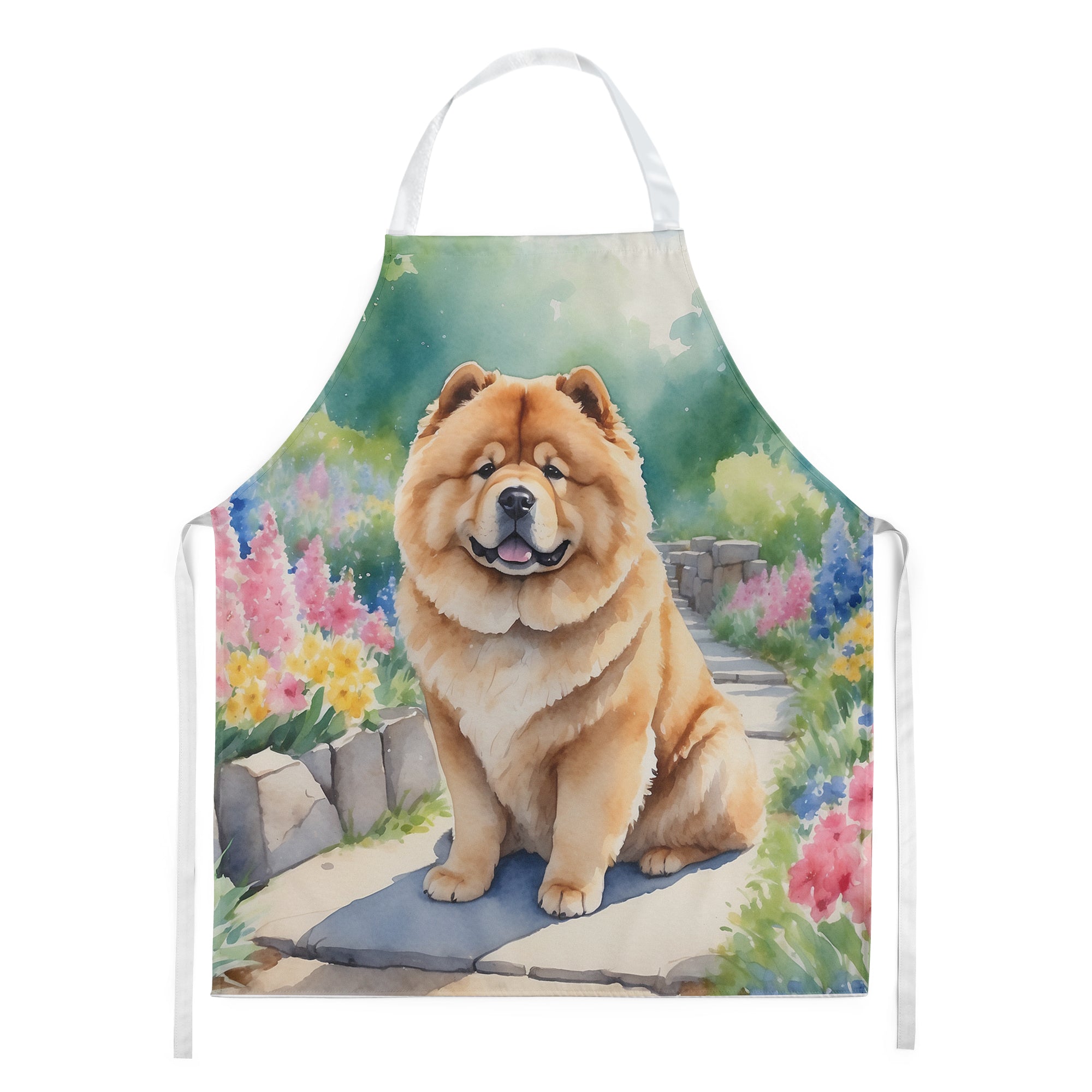 Decorate your space with our Chow Chow artwork on a Apron. Bring a bit of Spring into your home with a Spring Apron. Elevate your cooking, baking, and grilling experiences with our versatile Kitchen or BBQ Apron. This Bib Style apron isn't just limited to culinary activities - it also serves as an excellent baking apron, artist apron, server apron, gardening apron, or even a dog grooming apron. The apron showcases vibrant full-color artwork contributed by one of our talented artists, bringing a dash of style to your daily tasks. With dimensions of approximately 27"W x 30"H, it provides ample coverage to protect your clothing from spills and splashes. Our apron is meticulously crafted from 100% Ultra Spun Polyester, known for its durability and lightweight nature. The apron comes with white tie straps, ensuring a comfortable and adjustable fit for all. It's a perfect choice for kitchen apron enthusiasts, whether you are a woman or a man. Designed for easy maintenance, this apron is fully machine washable. The quick-drying polyester material actively reduces staining, keeping your apron looking fresh and new for longer. Our beautifully designed apron isn't just a functional kitchen accessory - it's a fashion statement in the culinary world!