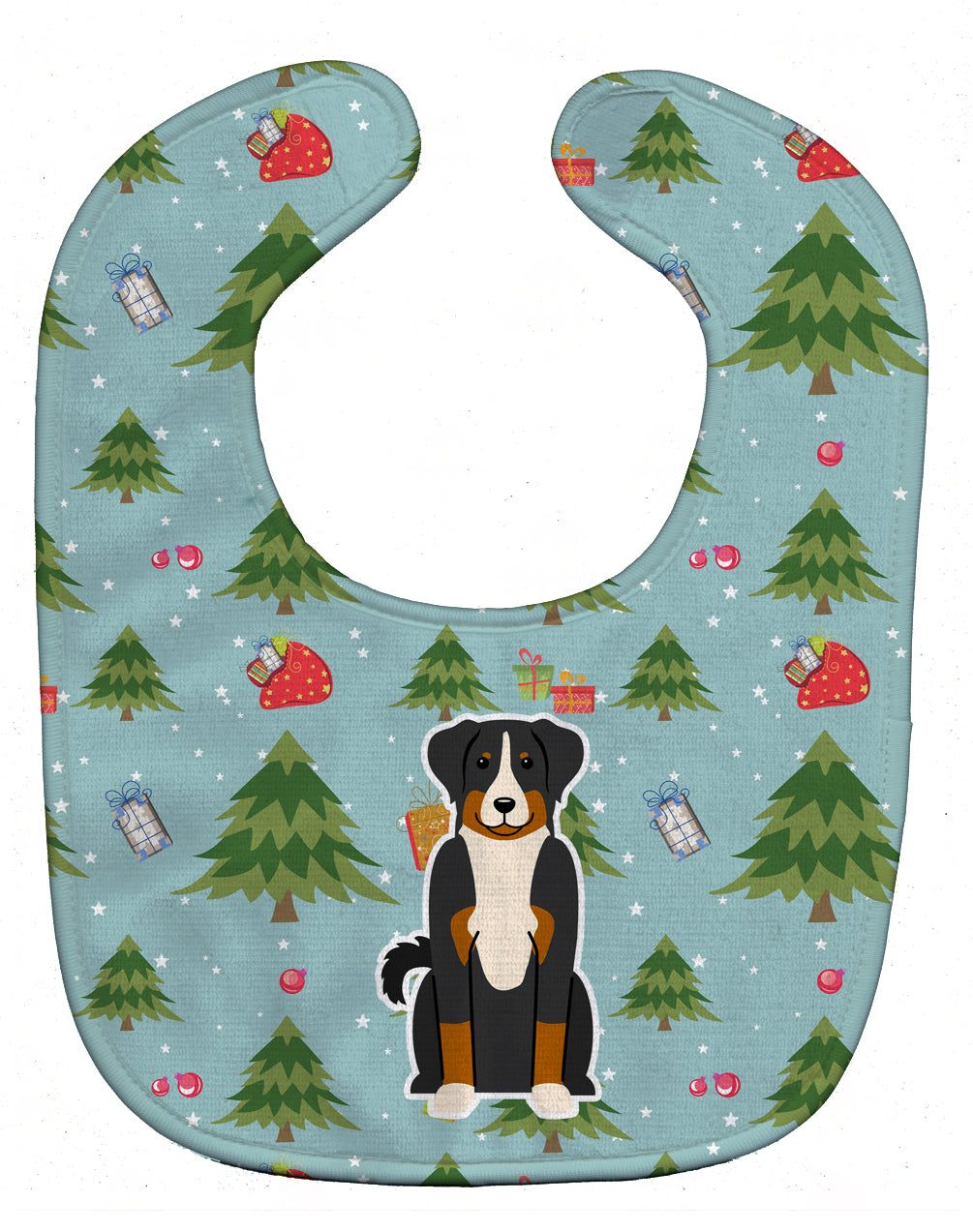 Decorate your space with our Christmas Appenzeller Sennenhund artwork on a Baby Bib. Cute and Functional. Dyed plush fabric baby bib with Velcro closure. Made of ultra-smooth micro-mink polyester that reverses to 100% cotton terry loops. Measures 10 inches x 13 inches, 0.8 oz. per piece. Edges are finished with binding. Machine washable and dry on low heat. Fade resistant and stain resistant. Top fabric gets even softer after the first wash.