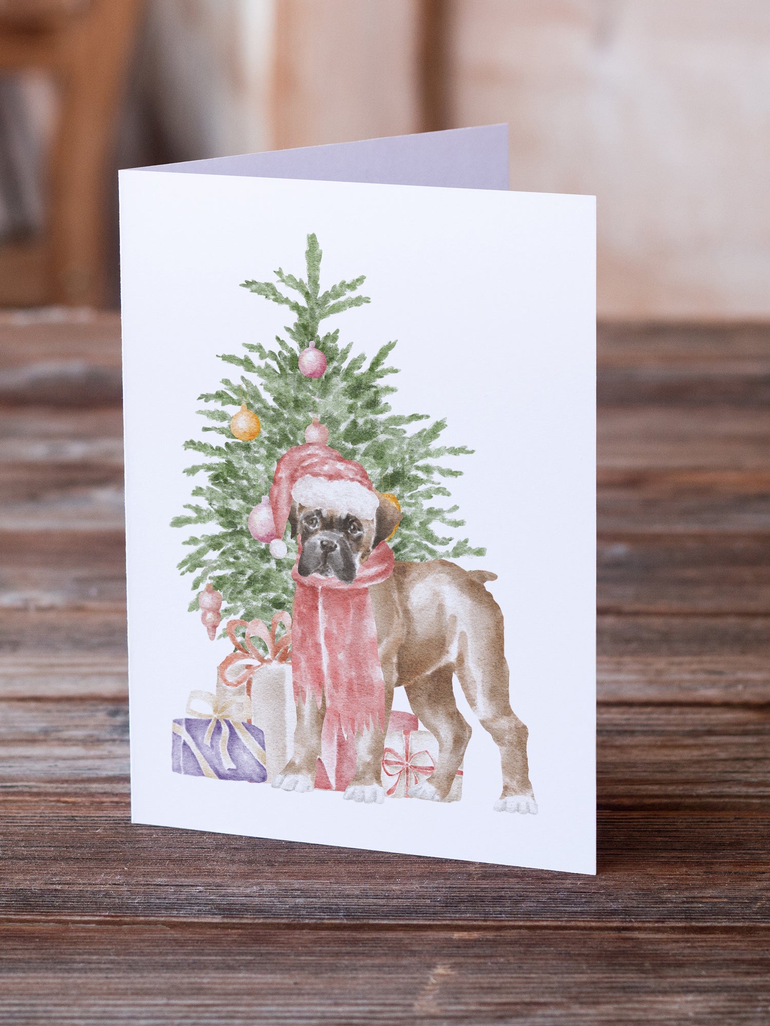 Christmas Boxer Puppy Greeting Cards - Blank Note Cards – 8-Pack of Artist-Designed Cards with Envelopes