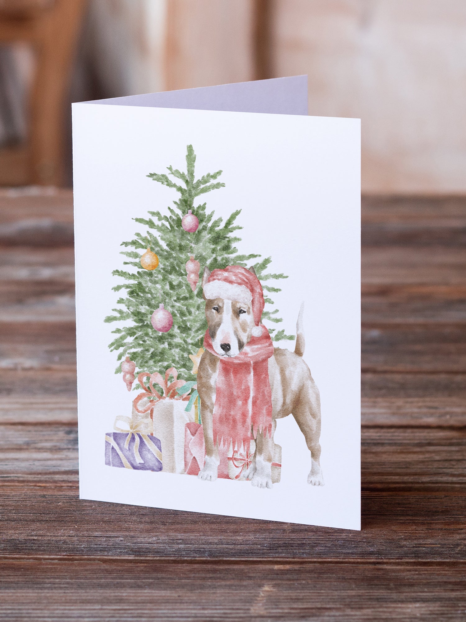 Decorate your space with our Christmas Bull Terrier artwork on a . Celebrate special moments with Caroline's Treasures Printed Greeting Card Pack. This pack includes eight beautifully folded 5x7 cards, accompanied by eight matching white envelopes. With blank interiors, these cards provide ample space for your personalized messages and heartfelt holiday greetings. Each card features captivating full-color artwork, meticulously printed in our facility on high-quality 80 lb cover stock or 216 GSM. The super smooth finish of the white cards enhances the visual impact of the artwork, creating a truly stunning presentation. Designed by our talented in-house artists or licensed artists, the artwork on these cards showcases their creativity and attention to detail. From vibrant illustrations to captivating designs, each card tells its own unique story. Whether it's for birthdays, anniversaries, holidays, or any special occasion, Caroline's Treasures Greeting Card Pack is the perfect way to convey your heartfelt sentiments. Share joy, love, and warm wishes with these exquisite cards and make every moment unforgettable.
