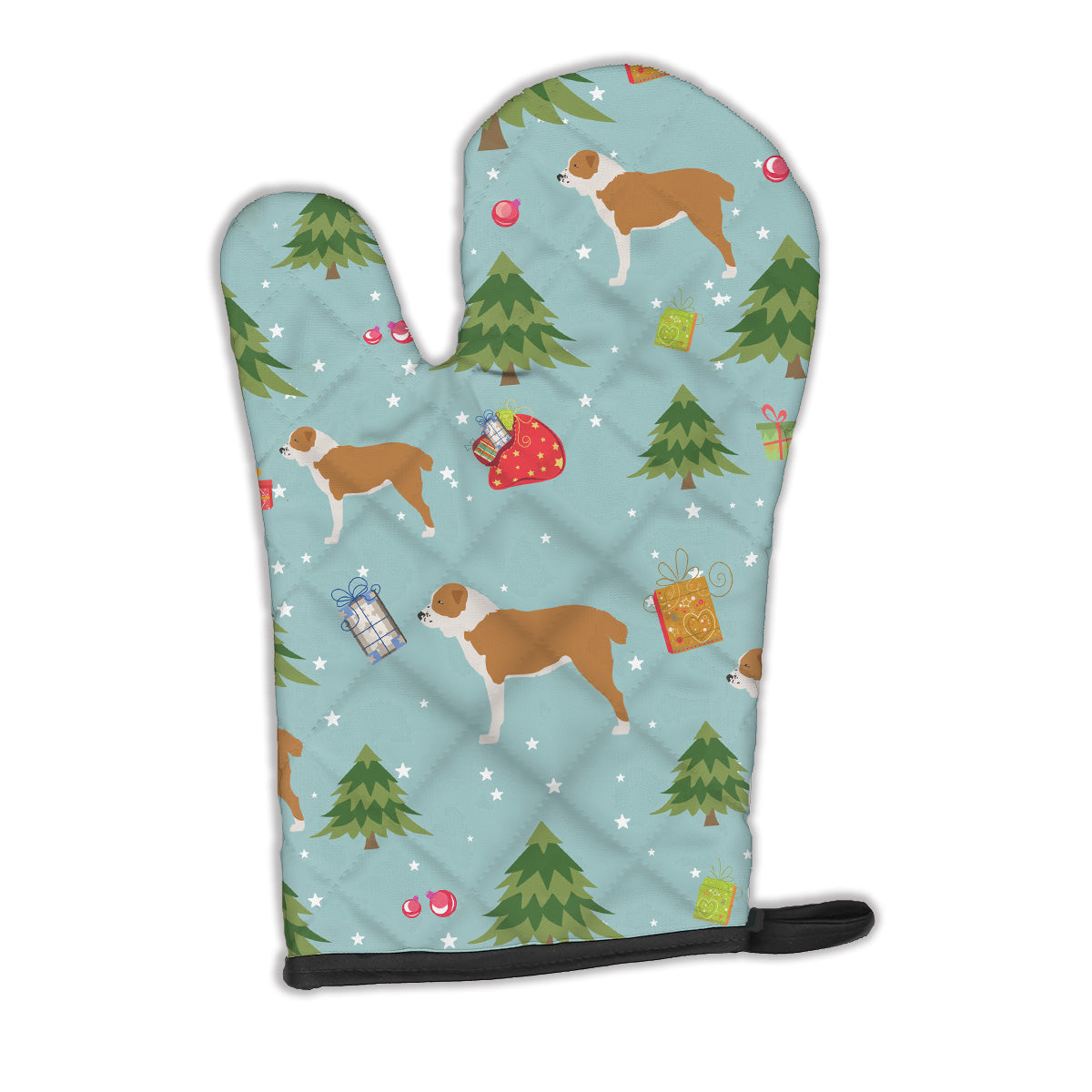 Decorate your space with our Christmas Central Asian Shepherd artwork on a Oven Mitt. Presenting our Large Right Hand Thick Heat Resistant Oven Mitt, an indispensable tool for any culinary enthusiast. This mitt boasts layers of quilted protection on both sides, providing outstanding resistance against extreme heat. Embellished with beautifully printed artwork, it adds an extra dash of charm to your kitchen decor. At about 12 inches long and 8 1/2 inches wide, this oven mitt offers a generous fit, accommodating a diverse range of hand sizes. Its design is enhanced by a sleek Black bias tape trim, finished with a convenient hoop for easy hanging. Fresh out of the packaging, the quilting process may give the mitt a stiff feel, but rest assured, it will soften with use and washing. Our mitt is crafted with a unique center fabric, Insul-Bright, a composite material made from polyester fibers, needle-punched through a nonwoven substrate and a reflective metallized film. This smart material resists both conduction and radiant energy, reflecting heat back to its source, all while remaining breathable. Our oven mitt is machine washable and safe for tumble drying. It's a perfect gift for your favorite Chef, BBQ enthusiast, or just a little treat for yourself! Experience safety, style, and convenience rolled into one with this exceptional oven mitt.