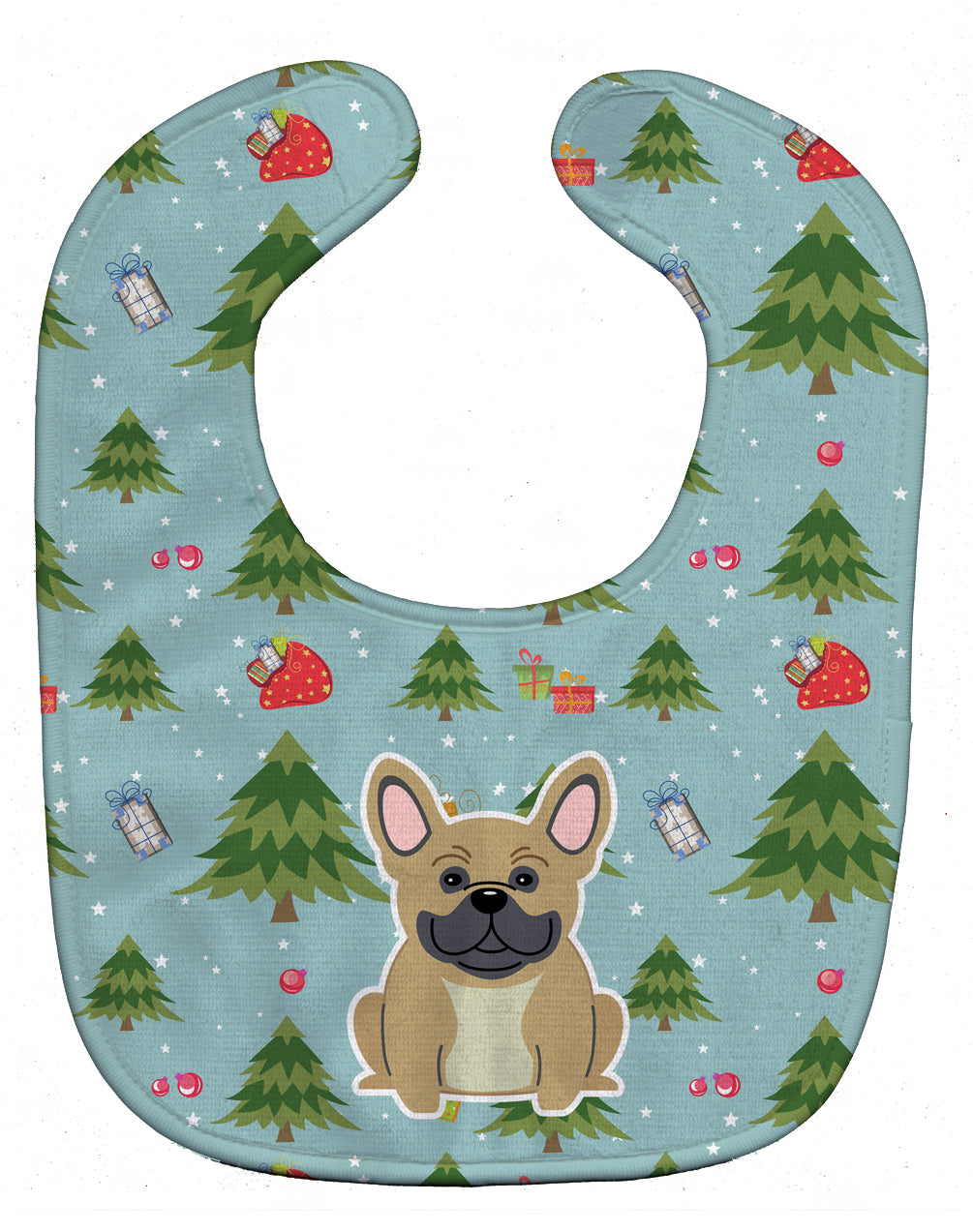 Decorate your space with our Christmas French Bulldog artwork on a Baby Bib. Cute and Functional. Dyed plush fabric baby bib with Velcro closure. Made of ultra-smooth micro-mink polyester that reverses to 100% cotton terry loops. Measures 10 inches x 13 inches, 0.8 oz. per piece. Edges are finished with binding. Machine washable and dry on low heat. Fade resistant and stain resistant. Top fabric gets even softer after the first wash.