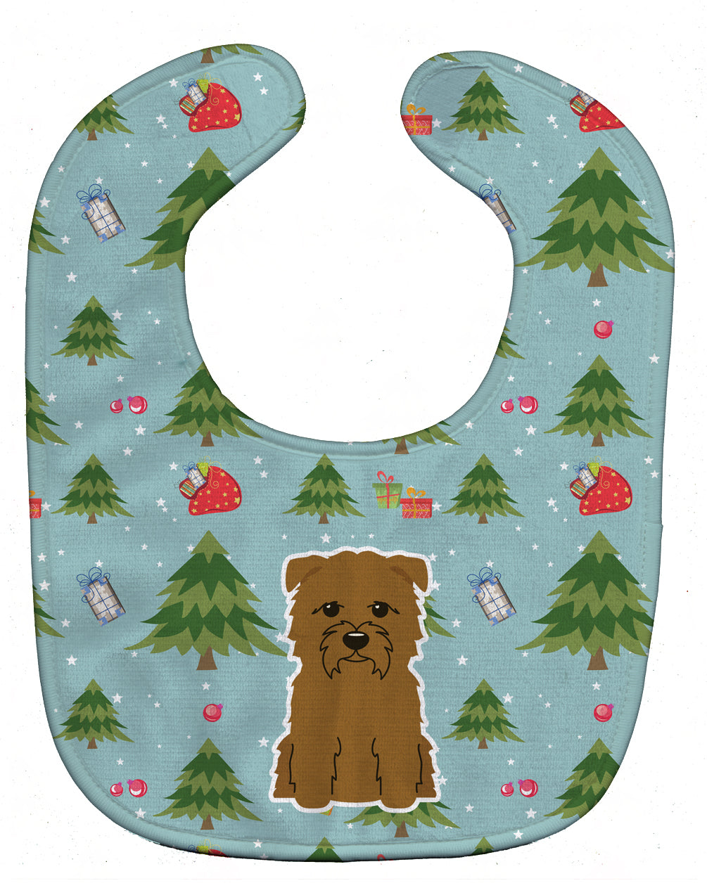 Decorate your space with our Christmas Glen of Imaal artwork on a Baby Bib. Cute and Functional. Dyed plush fabric baby bib with Velcro closure. Made of ultra-smooth micro-mink polyester that reverses to 100% cotton terry loops. Measures 10 inches x 13 inches, 0.8 oz. per piece. Edges are finished with binding. Machine washable and dry on low heat. Fade resistant and stain resistant. Top fabric gets even softer after the first wash.