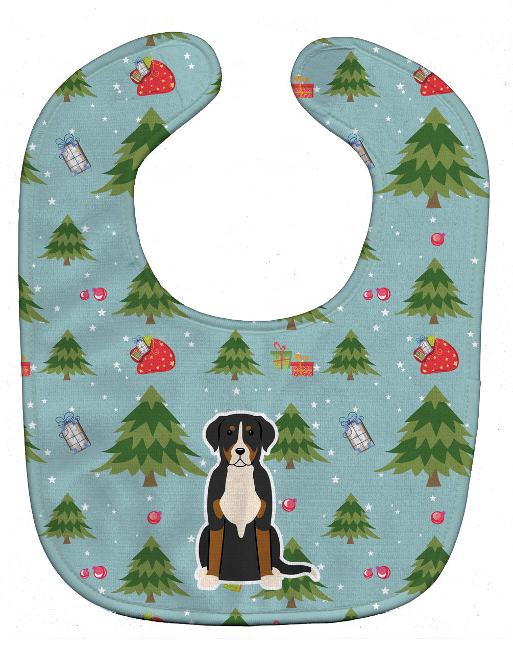 Decorate your space with our Christmas Greater Swiss Mountain Dog artwork on a Baby Bib. Cute and Functional. Dyed plush fabric baby bib with Velcro closure. Made of ultra-smooth micro-mink polyester that reverses to 100% cotton terry loops. Measures 10 inches x 13 inches, 0.8 oz. per piece. Edges are finished with binding. Machine washable and dry on low heat. Fade resistant and stain resistant. Top fabric gets even softer after the first wash.