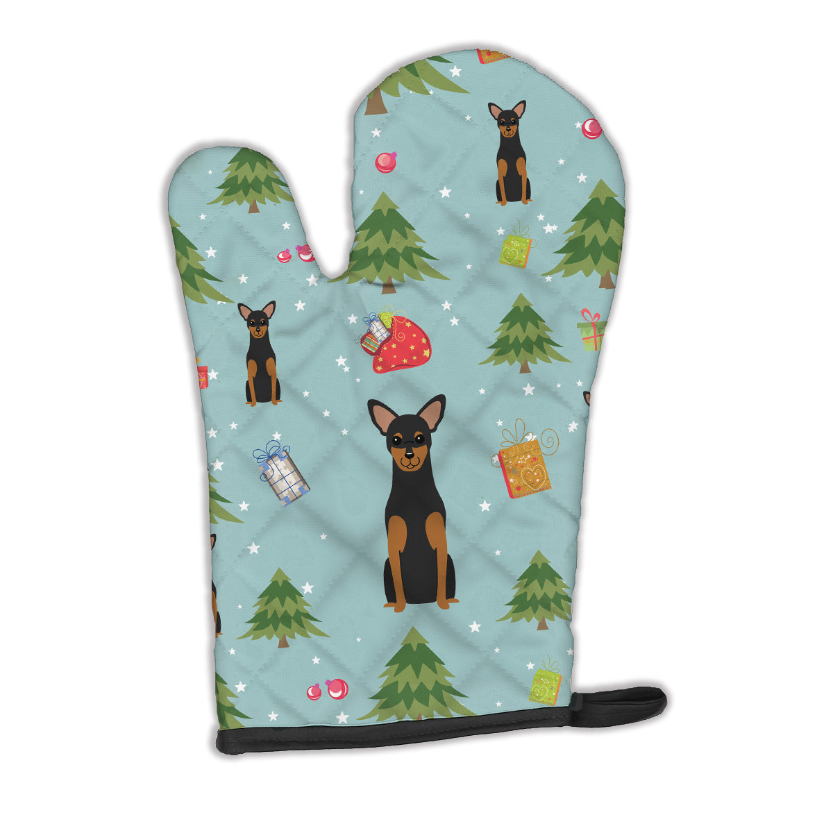 Decorate your space with our Christmas Manchester Terrier artwork on a Oven Mitt. Presenting our Large Right Hand Thick Heat Resistant Oven Mitt, an indispensable tool for any culinary enthusiast. This mitt boasts layers of quilted protection on both sides, providing outstanding resistance against extreme heat. Embellished with beautifully printed artwork, it adds an extra dash of charm to your kitchen decor. At about 12 inches long and 8 1/2 inches wide, this oven mitt offers a generous fit, accommodating a diverse range of hand sizes. Its design is enhanced by a sleek Black bias tape trim, finished with a convenient hoop for easy hanging. Fresh out of the packaging, the quilting process may give the mitt a stiff feel, but rest assured, it will soften with use and washing. Our mitt is crafted with a unique center fabric, Insul-Bright, a composite material made from polyester fibers, needle-punched through a nonwoven substrate and a reflective metallized film. This smart material resists both conduction and radiant energy, reflecting heat back to its source, all while remaining breathable. Our oven mitt is machine washable and safe for tumble drying. It's a perfect gift for your favorite Chef, BBQ enthusiast, or just a little treat for yourself! Experience safety, style, and convenience rolled into one with this exceptional oven mitt.