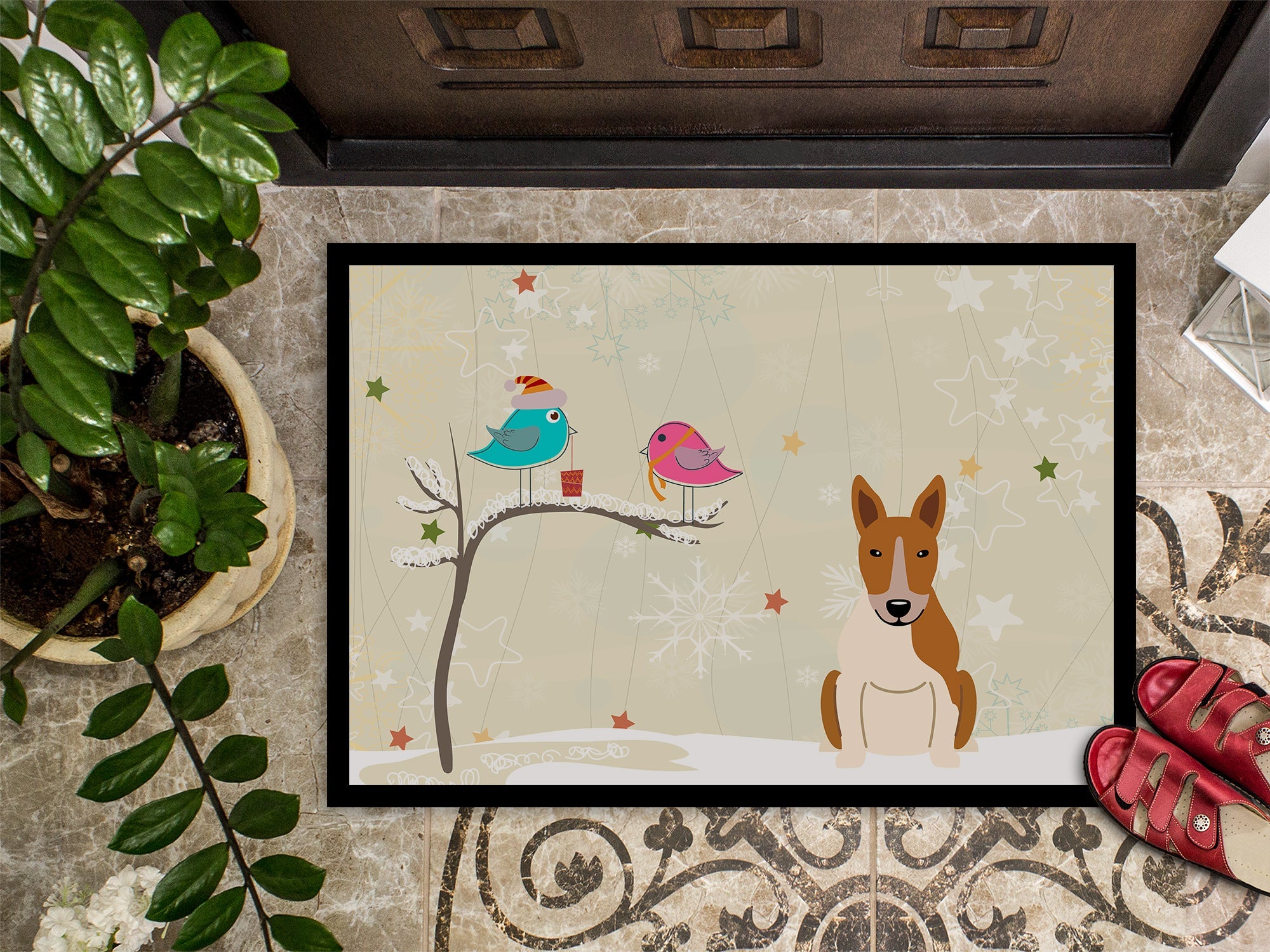Christmas Presents between Friends Bull Terrier Red White Doormat - 24x36 Decorative Floor Mat – Indoor/Outdoor Rug with Artistic Flair BB2607JMAT