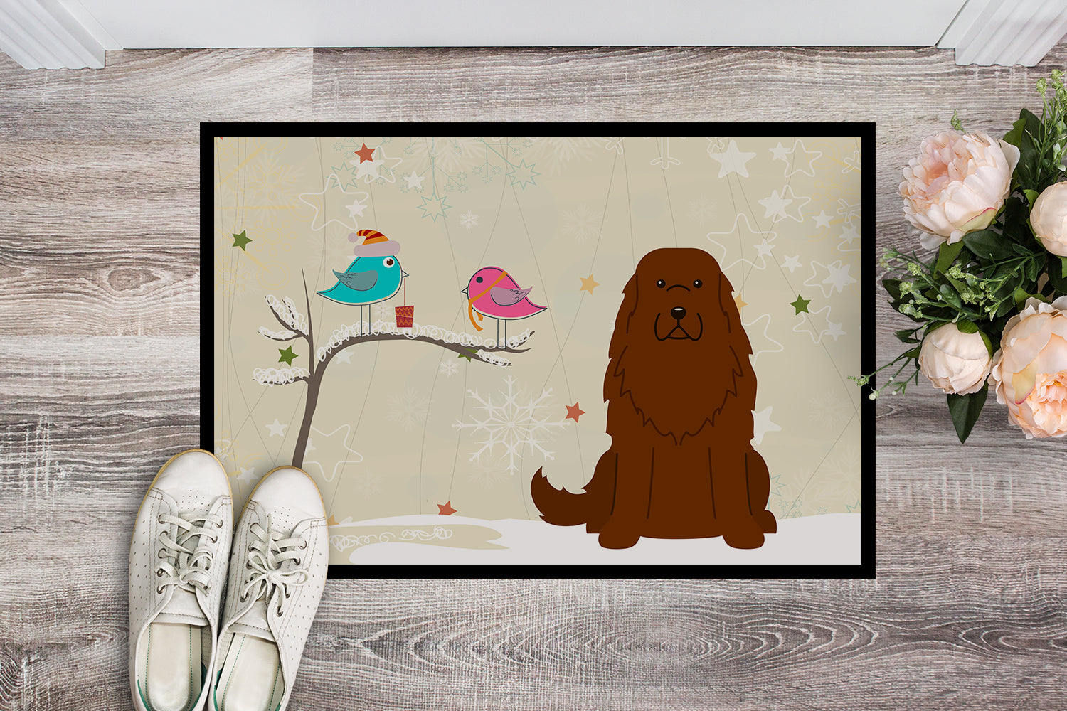 Decorate your space with our Christmas Caucasian Shepherd artwork on a Doormat. Welcome your guests in style with our Artwork Door Mat, designed to withstand almost any weather condition. This mat, measuring approximately 24 by 36 inches, is held together by durable black binding tape. Its top layer, composed of polyester felt, is dyed with the eye-catching image you see on the mat. A few layers below provide the mat with stability, while its rubber bottom is stamped to help prevent slipping and ensures safety. Our mat works wonderfully as both an indoor or outdoor door mat. For cleaning, simply hose it off with water or use a power washer - no need for any cleaner that produces suds. Avoid scrubbing with a brush, instead, opt for the vacuum on floor setting. Designed manufactured and printed in the USA, this mat is a perfect addition to your porch, outdoor kitchen, entryway, or any indoor space. Its unique design makes it a charming decorative rug that greets your guests and adds a stylish touch to your home decor.
