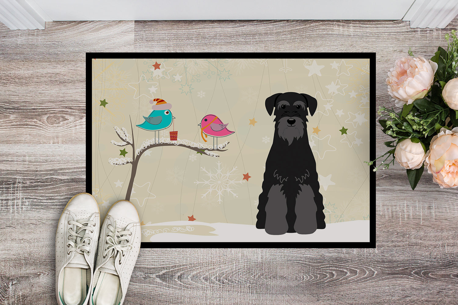 Christmas Presents between Friends Standard Schnauzer Black Doormat - 24x36 Decorative Floor Mat – Indoor/Outdoor Rug with Artistic Flair BB2504JMAT