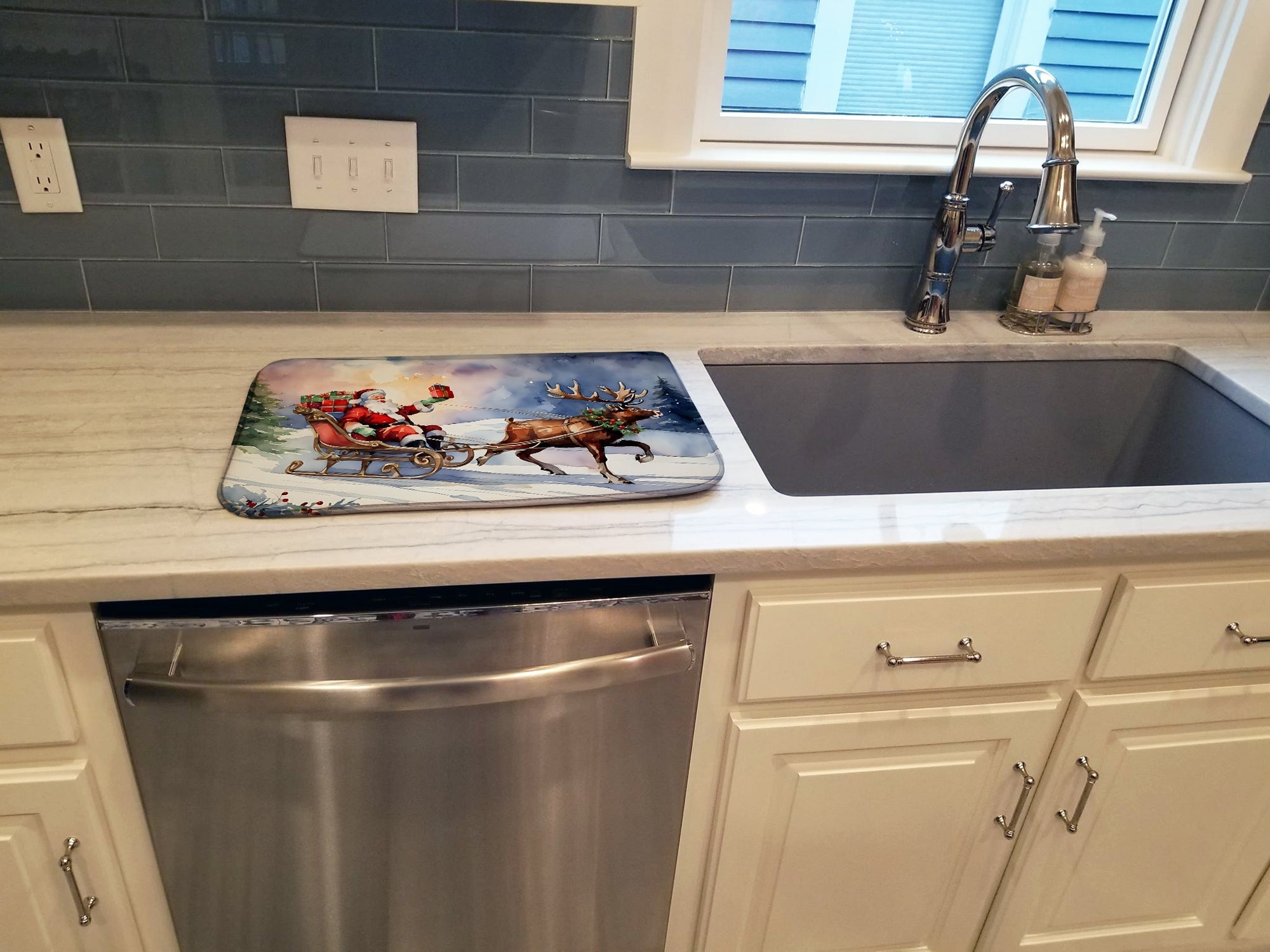 Celebrate Christmas with this Christmas Dish Drying Mat. Say goodbye to messy countertops and soggy dish towels with our innovative dish drying mat. Our high-quality dish drying pad is designed to keep your countertops dry while offering a stylish and efficient solution. Whether you're air drying dishes, glasses, stemware, silverware, pots, pans, bottles, or even fruits and vegetables, our dish mat is the perfect choice. The 14 inches x 22 inches size fits most counters and dish drying racks, and the non-slip design ensures stability. Made with water-absorbent polyester and a polyurethane foam insert, our dish drying mat is not only functional but also durable. It's machine washable and printed in the USA for long-lasting use. The beautiful artwork adds flair to your kitchen decor, making it a perfect housewarming gift or present for any occasion. Upgrade your kitchen experience with our absorbent and versatile dish drying mat.