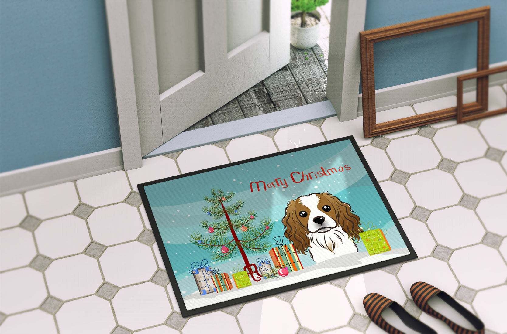 Christmas Tree and Cavalier Spaniel Doormat - 24x36 Decorative Floor Mat – Indoor/Outdoor Rug with Artistic Flair BB1596JMAT