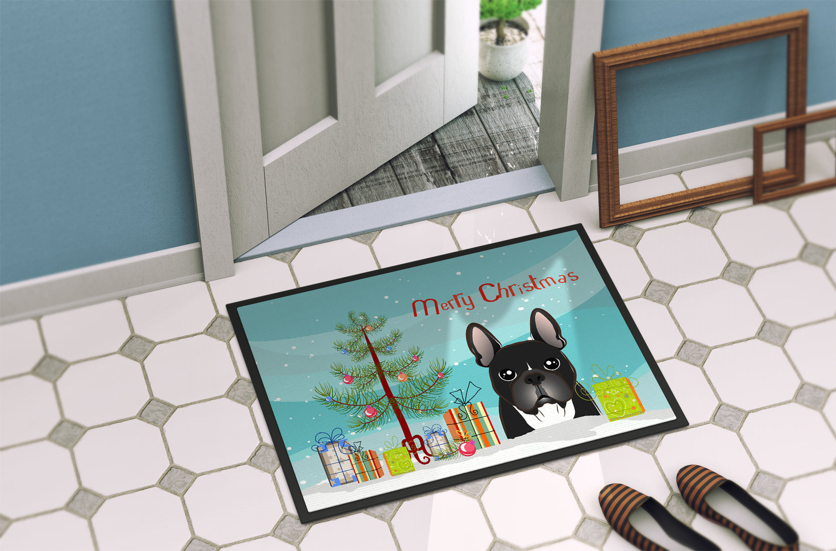 Christmas Tree and French Bulldog Doormat - 24x36 Decorative Floor Mat – Indoor/Outdoor Rug with Artistic Flair BB1599JMAT
