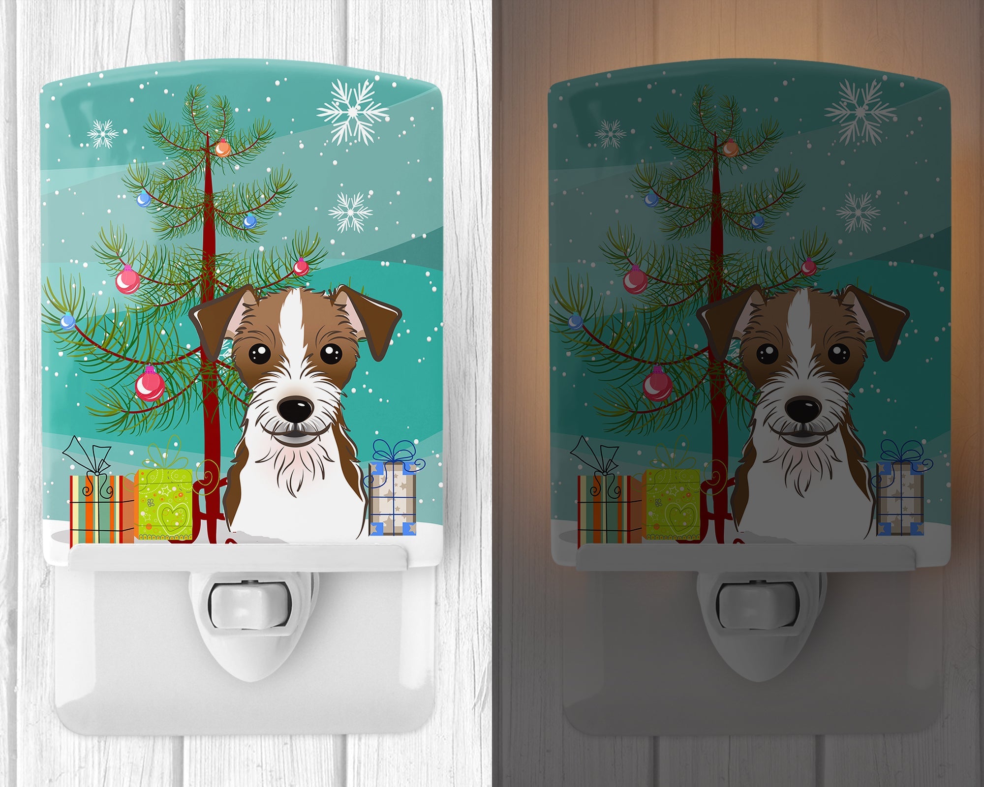 Decorate your space with our Christmas Jack Russell Terrier artwork on a Night Light. Introduce a splash of artistic flair and subtle illumination to your space with the Decorative Ceramic Night Light from Caroline's Treasures. Perfect for any room, this night light seamlessly blends functionality with an aesthetic appeal, offering a stylish solution to brighten up dark corners of your home or office. Boasting a six-inch high by four-inch wide ceramic tile at the front, it showcases vivid, full-color artwork from distinguished artists, transforming a simple utility into a vibrant art piece. The artwork is securely encased in a robust metal holder, ensuring durability and longevity. Two screws are provided to firmly affix the tile into the holder. The holder extends three inches deep, housing an included bulb that emits a soft, welcoming glow. This product meets all safety standards, as evidenced by its UL approval. Proudly made in the United States from imported components, this Decorative Ceramic Night Light is not just a functional device; it's a statement piece that enhances the ambiance of your surroundings.