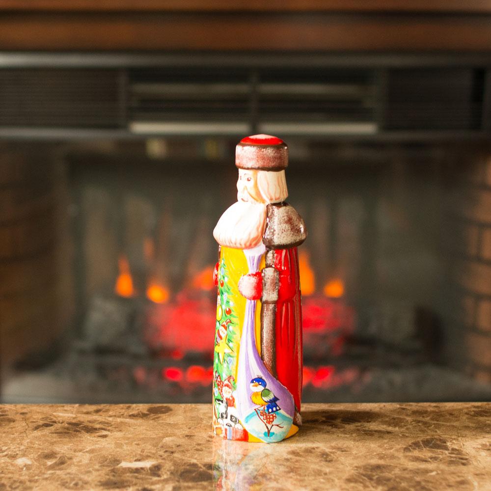 Each figurine is carved entirely from a single piece of wood by a skilled artist in the Mountains of Ukraine. After being shaped, the Santa is passed onto another artist and given life by being carefully painted with vivid details. Each piece is then varnished and signed by the artist on the bottom. This time consuming process makes each figurine unique- no two could ever be the same!
