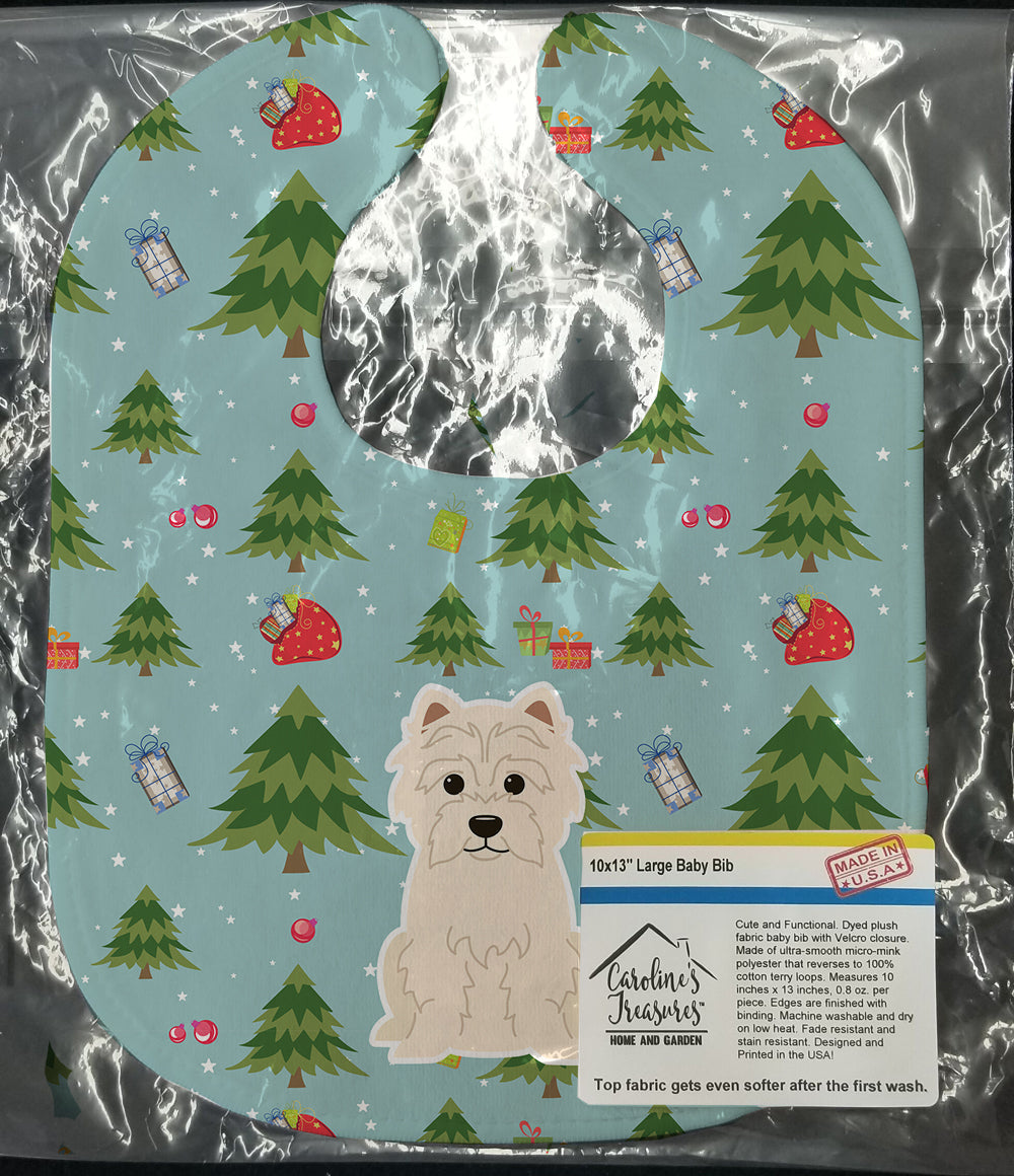 Decorate your space with our Christmas West Highland White Terrier artwork on a Baby Bib. Cute and Functional. Dyed plush fabric baby bib with Velcro closure. Made of ultra-smooth micro-mink polyester that reverses to 100% cotton terry loops. Measures 10 inches x 13 inches, 0.8 oz. per piece. Edges are finished with binding. Machine washable and dry on low heat. Fade resistant and stain resistant. Top fabric gets even softer after the first wash.