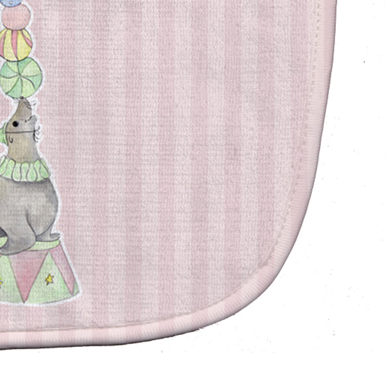 Cute and Functional. Dyed plush fabric baby bib with Velcro closure. Made of ultra-smooth micro-mink polyester that reverses to 100% cotton terry loops. Measures 10 inches x 13 inches, 0.8 oz. per piece. Edges are finished with binding. Machine washable and dry on low heat. Fade resistant and stain resistant. Top fabric gets even softer after the first wash.