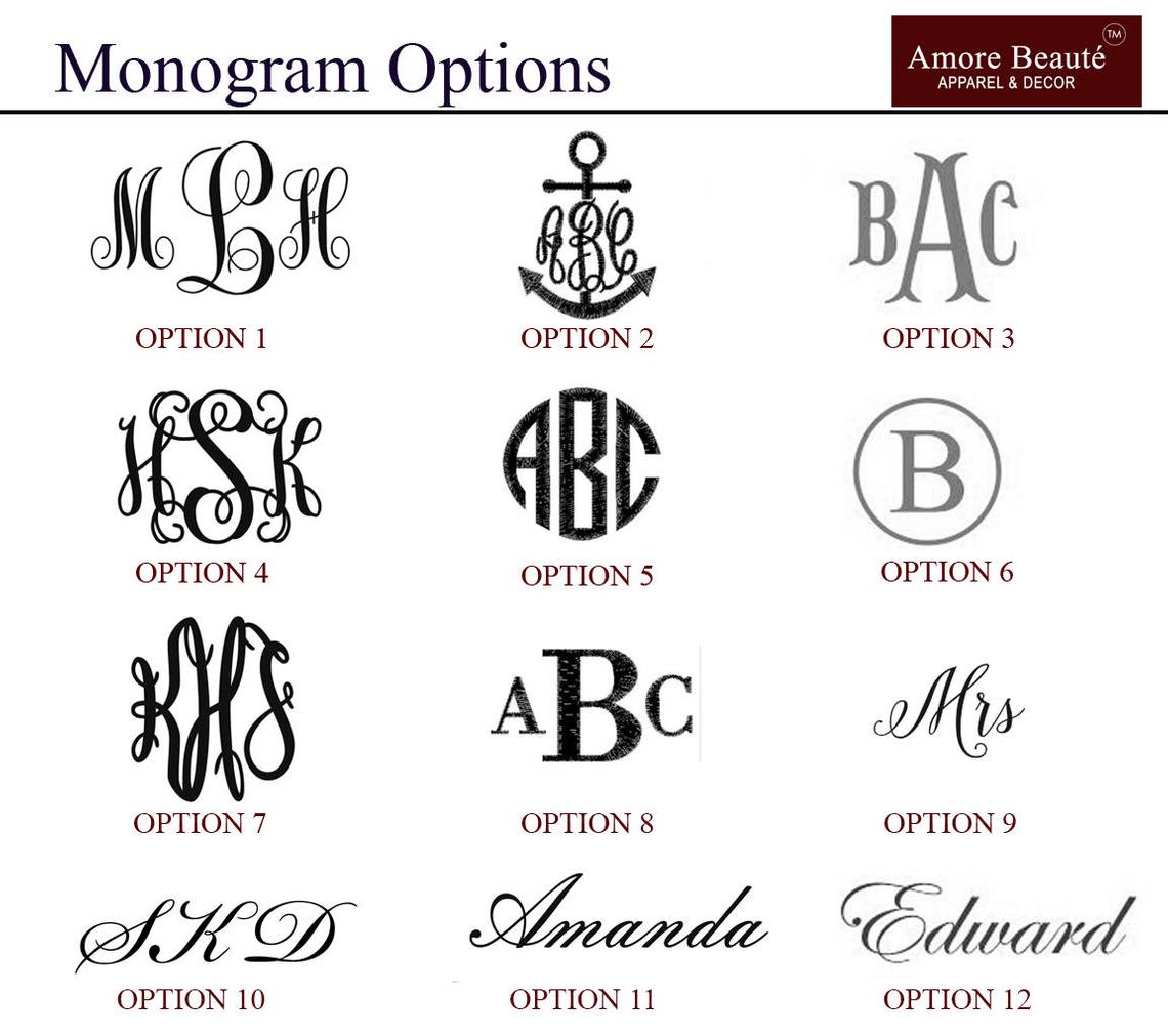 - Monogram letter or name, exactly as you would like it embroidered
