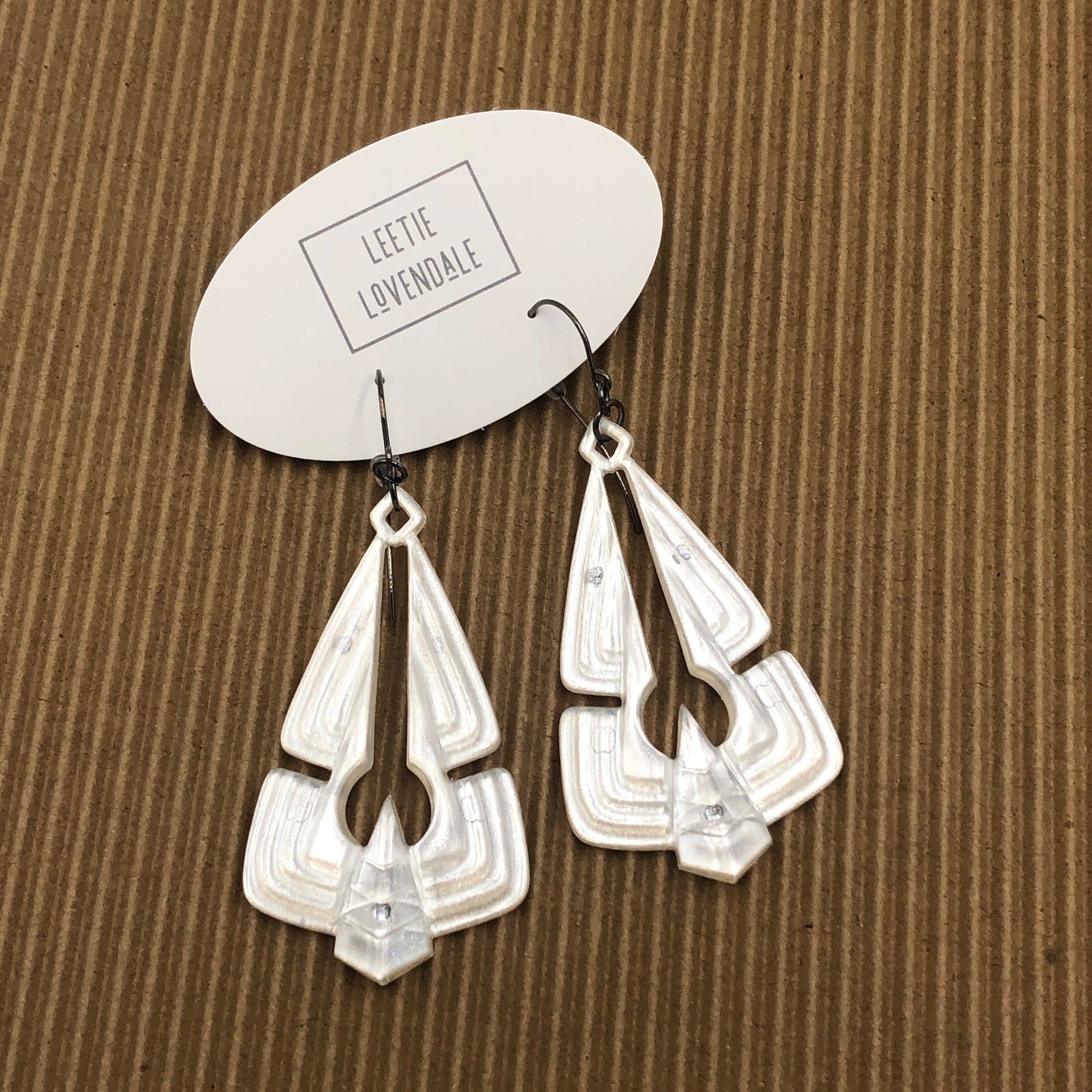 Clear lucite earrings with a silver pearlized coating on one side, adding an over all glow to their finish. A style statement that looks and feels good, these earrings are crafted using only the highest quality materials in an effort to bring you a timeless piece you can show off with confidence.