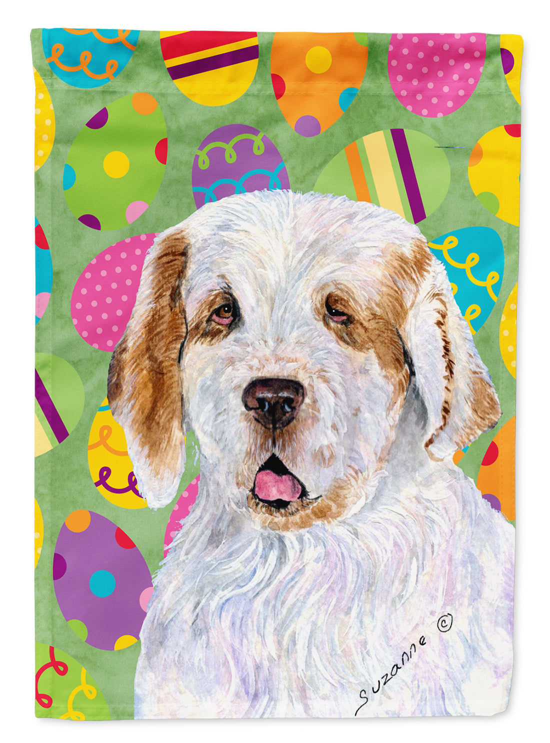 Decorate your space with our Easter Clumber Spaniel artwork on a Large Flag. Presenting our Heavy Duty Polyester House Size Decorative Sleeve Pole Flag, a vibrant addition to enhance the aesthetic appeal of your home. This large decorative flag, measuring approximately 28 x 40 inches, offers ample coverage and visibility. Each flag is meticulously sewn and made individually, ensuring a unique piece that may slightly vary in size. It's a sleeve pole flag, designed to fit a standard decorative flag pole effortlessly. Please note that the flag pole and bracket are not included and should be purchased separately. What sets our flag apart is its dual-sided print. The design is mirrored on both sides of the fabric, allowing for uniform visibility regardless of the angle. Printed in full color, our flag showcases vibrant hues that truly stand out. To ensure lasting vibrancy and durability, the dyes are heat-set into the fabric. This ensures your flag remains bright and captivating through various weather conditions. Elevate the look of your home with our Heavy Duty Polyester House Size Decorative Sleeve Pole Flag!
