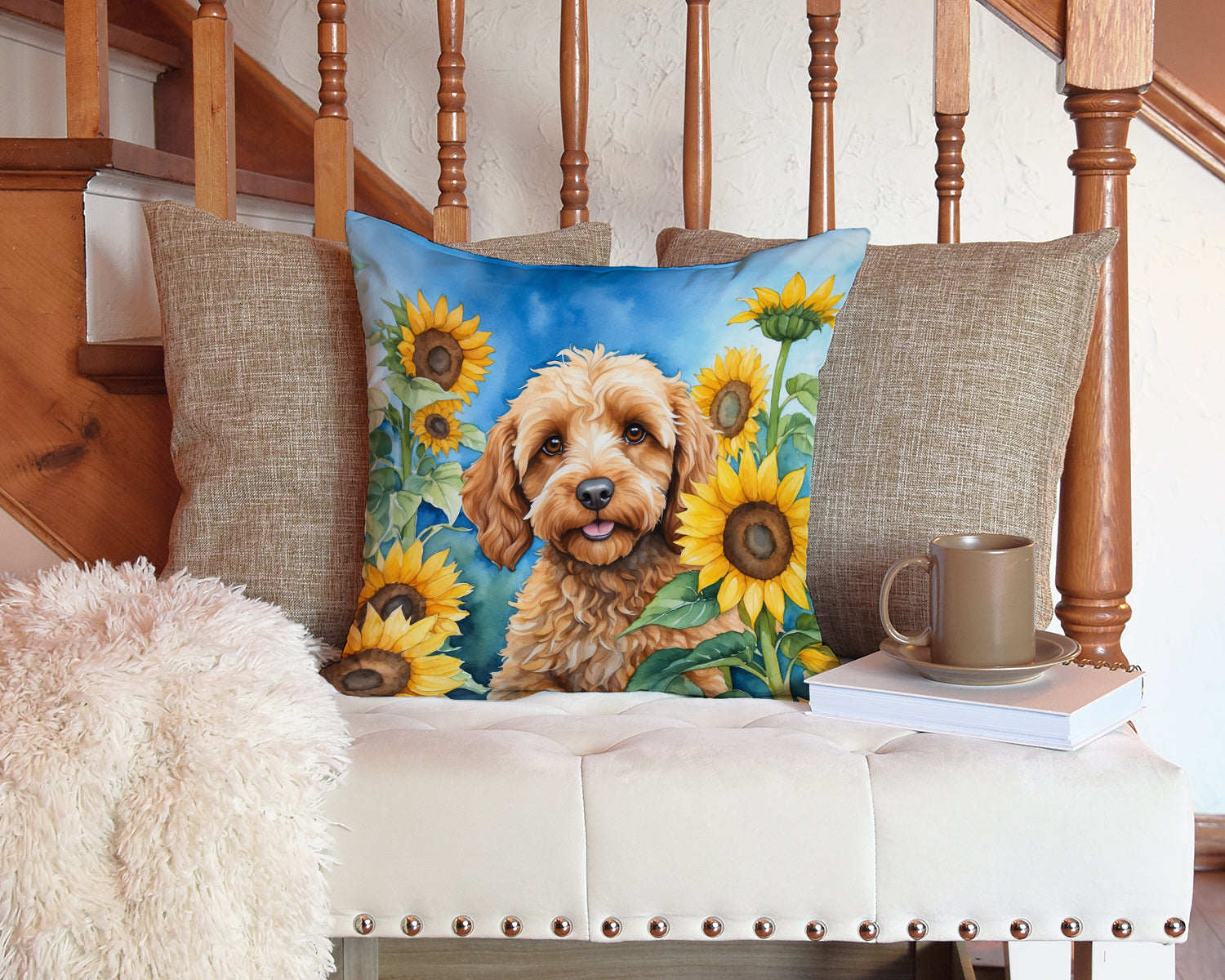 Decorate your space with our Cockapoo artwork on a Pillow. Bring a bit of Summer into your home with a Summer Pillow. Add a touch of vibrancy and comfort to your outdoor seating with Caroline's Treasures Fabric Decorative Pillow. Measuring approximately 14 inches by 14 inches, this outdoor pillow is crafted to elevate the appeal of your patio furniture, infusing it with vivid color and artistic flair. The pillow includes a 100% Polyester Fabric sham filled with a quality pillow form to provide superior comfort. Innovatively made from our brand new material, specifically woven for its water resistance, this pillow is designed for durability. The soft canvas fabric offers versatility in use, fit for your indoor couch or your outdoor patio, porch, or veranda. The fabric is dyed with colorfast dyes built for resilience against weather conditions, ensuring the pillow retains its beauty over time. Constructed by sewing three fabric pieces to create a sham, the polyester insert is then nestled inside to form the pillow, resulting in an overstuffed pillow that maintains its shape. Both the sham and the pillow insert are proudly made in the United States. As the pillows are handcrafted, there may be minor variations in size, further enhancing their unique charm. Experience comfort in style with Caroline's Treasures Fabric Decorative Pillow.