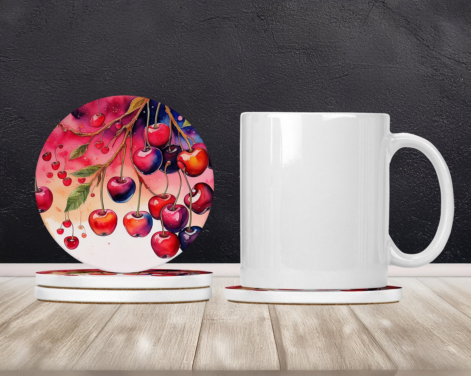 Colorful Cherries Large Sandstone Coasters Pack of 4