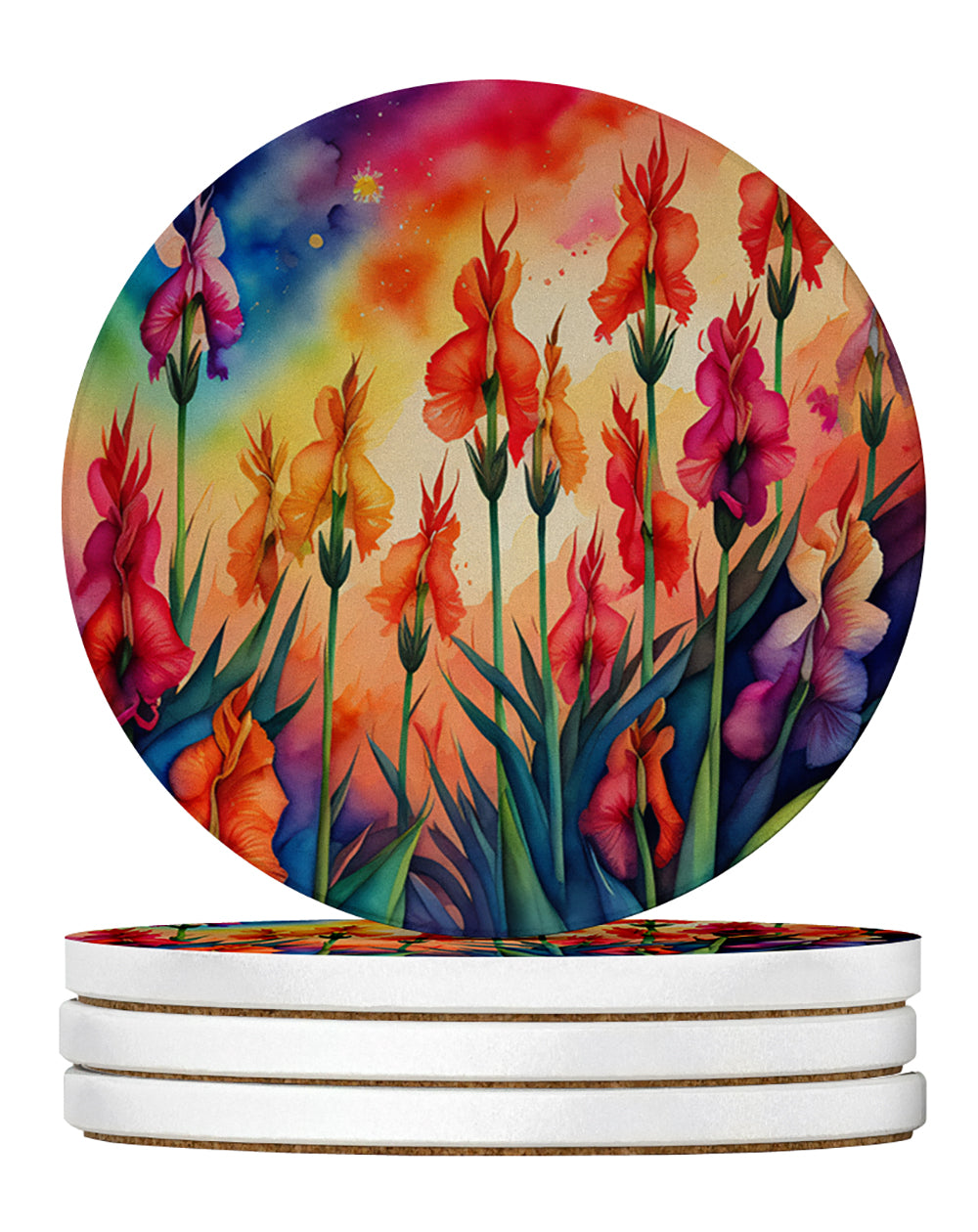 Large Sandstone Coasters Pack of 4 featuring breed specific Gladiolus artwork. Introducing Caroline's Treasures Large Sandstone Coasters Pack of 4, the perfect addition to your home decor. Each coaster measures nearly 4 inches and is made from absorbent sandstone with a cork backing. Designed and printed in the United States, these coasters feature artwork from Caroline's Treasures' talented artists. Protect your countertops and tables from hot and cold drink condensation with these absorbent coasters. They efficiently absorb moisture, ensuring your surfaces stay dry and clean. Choose from a wide range of designs to update and enhance your decor or give them as a thoughtful gift for any occasion. Cleaning is a breeze—simply wipe the coaster with a damp towel to remove any spills or stains. Each set comes in a brown gift box, making it ready to be wrapped for that special person in your life. These absorbent sandstone coasters also make an excellent housewarming gift, providing both practicality and style. Celebrate birthdays, Mother's Day, Father's Day, Thanksgiving, Christmas, Teacher's Appreciation Day, or simply show someone you care with these versatile and charming coasters. Caroline's Treasures Large Sandstone Coasters Pack of 4 is the perfect happy gift for any occasion.