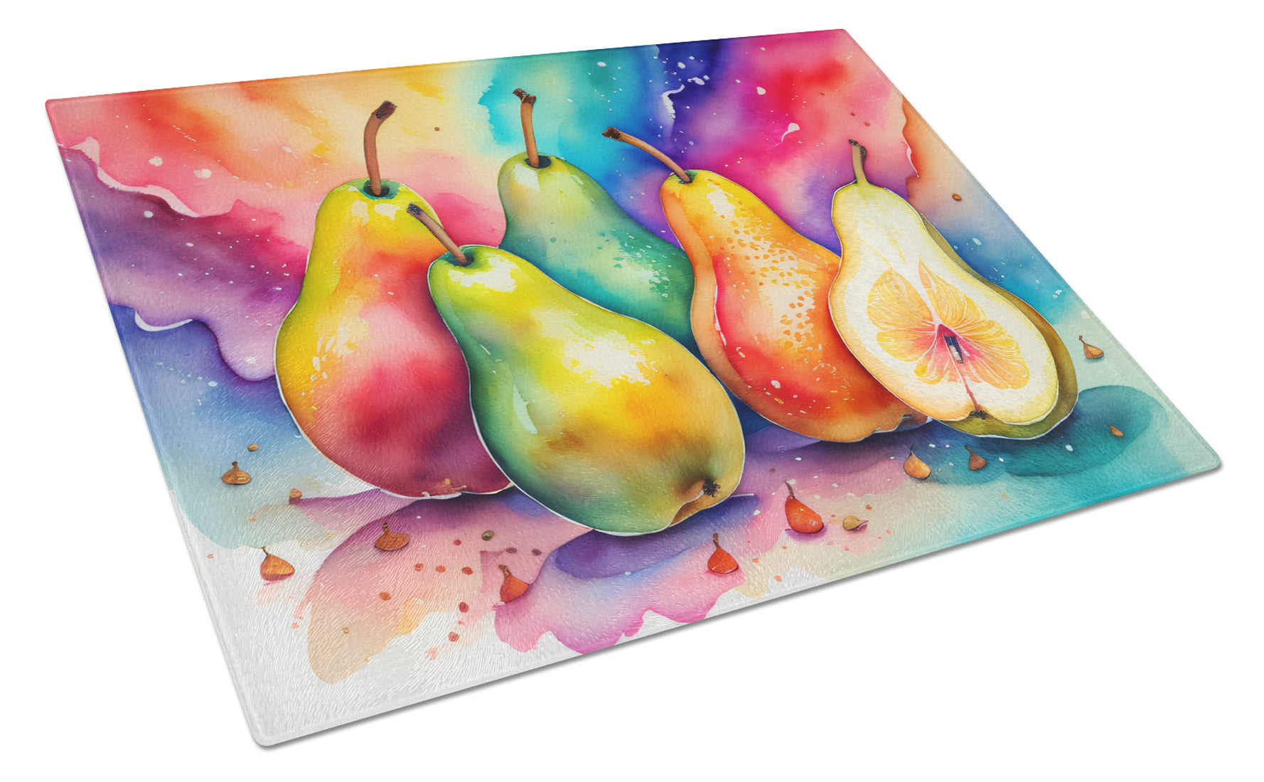 Colorful Pears Glass Cutting Boards – Durable, Decorative Kitchen Art Large