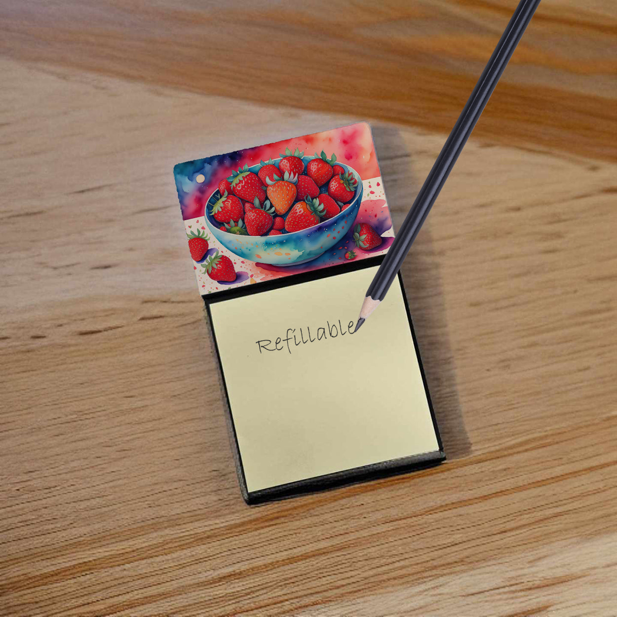 Decorate your space with our Strawberries artwork on a Sticky Note Holder. Add a touch of creativity and flair to your desk with the Decorative Sticky Note Holder from Caroline's Treasures. This uniquely designed sticky note dispenser will not only keep your notes in one place but also add an artistic element to your workspace. The top of the holder features beautiful artwork that is sure to catch the eye. Crafted for convenience, this sticky note holder comes with a small pad of 3-inch x 3-inch sticky notes at the bottom. The holder is designed for easy refilling; simply remove the last sheet of a new sticky note pad and stick it onto the board. This feature ensures you will always have sticky notes at your disposal. This Sticky Note Holder makes a perfect gift. Be it for your colleagues at work, your Facebook friends, or even your dog groomer or hairdresser, this versatile product fits the bill. You can use it for making grocery lists, leaving notes for loved ones, or for jotting down important reminders. The bottom board is rigid and can be magnetized by adding a business card size magnet to the back (sold separately). This makes it even more versatile, allowing you to place it on a refrigerator or any other magnetic surface. With this Sticky Note Holder, you're not only organizing your notes, but also personalizing your space.