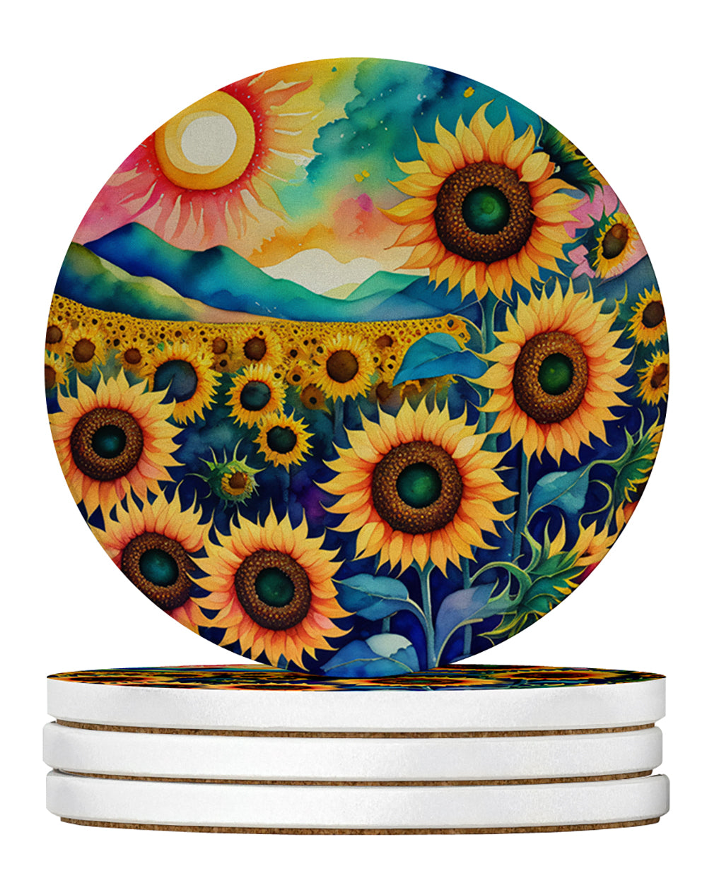 Colorful Sunflowers Large Sandstone Coasters Pack of 4