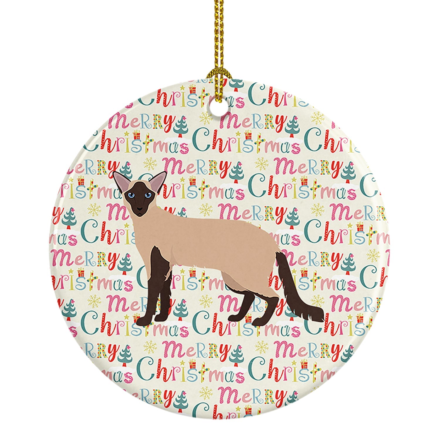 Decorate your space with our Christmas Colorpoint Longhair artwork on a Ornament. Add a touch of personalized charm to your Christmas tree this holiday season with our Ceramic Ornament. Measuring 2.8125 inches in diameter, this round porcelain ornament beautifully reflects your festive lights, enhancing your holiday decor. The gloss surface sets off the vibrant, full-color artwork contributed by one of our talented artists, bringing a pop of color and joy to your tree. This Ceramic Ornament doesn't stop at being merely decorative. The white back is designed for personalization. Write a heartfelt message, mark a special year, or inscribe a date with a paint pen or a permanent marker to create a treasured memento. Please ensure you allow any personalization to dry thoroughly before handling to maintain the pristine finish. Included with the ornament is a delicate gold cord for easy hanging. Made in the USA, this Ceramic Ornament makes an exceptional gift for a pet sitter, teacher, family member, or anyone you wish to share a little Christmas magic with. With its blend of style, charm, and personal touch, it's a meaningful addition to any Christmas tree.