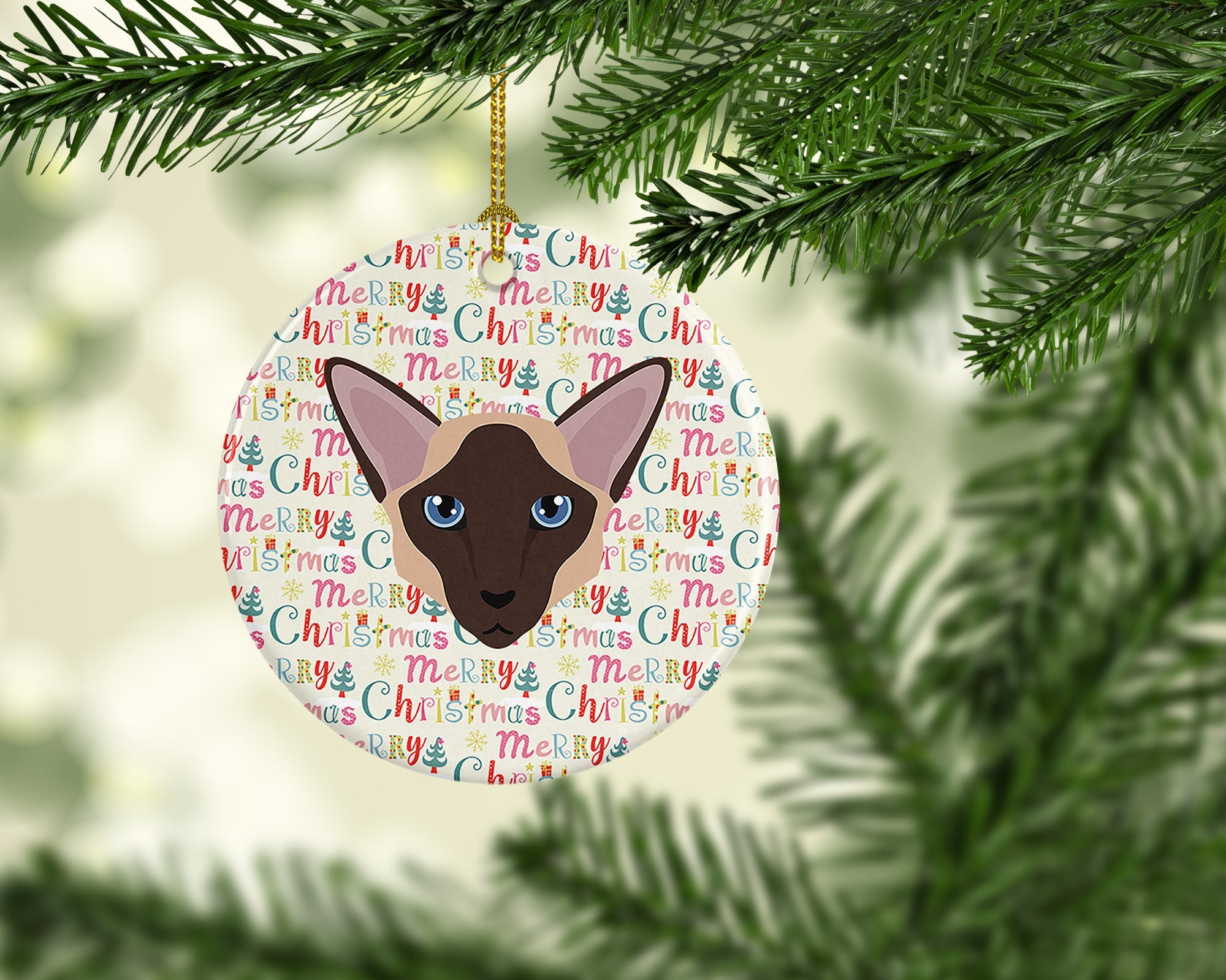 Decorate your space with our Christmas Colorpoint Longhair Cat artwork on a Ornament. Add a touch of personalized charm to your Christmas tree this holiday season with our Ceramic Ornament. Measuring 2.8125 inches in diameter, this round porcelain ornament beautifully reflects your festive lights, enhancing your holiday decor. The gloss surface sets off the vibrant, full-color artwork contributed by one of our talented artists, bringing a pop of color and joy to your tree. This Ceramic Ornament doesn't stop at being merely decorative. The white back is designed for personalization. Write a heartfelt message, mark a special year, or inscribe a date with a paint pen or a permanent marker to create a treasured memento. Please ensure you allow any personalization to dry thoroughly before handling to maintain the pristine finish. Included with the ornament is a delicate gold cord for easy hanging. Made in the USA, this Ceramic Ornament makes an exceptional gift for a pet sitter, teacher, family member, or anyone you wish to share a little Christmas magic with. With its blend of style, charm, and personal touch, it's a meaningful addition to any Christmas tree.