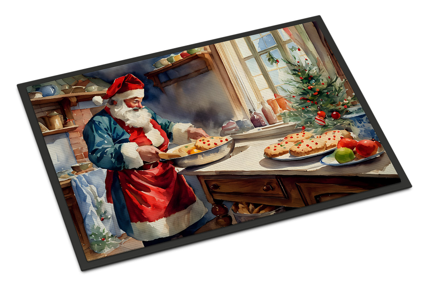 Decorate your space with our Christmas Santa Claus Babbo Natale artwork on a Doormat. Welcome your guests in style with our Artwork Door Mat, designed to withstand almost any weather condition. This mat, measuring approximately 18 by 27 inches, is held together by durable black binding tape. Its top layer, composed of polyester felt, is dyed with the eye-catching image you see on the mat. A few layers below provide the mat with stability, while its rubber bottom is stamped to help prevent slipping and ensures safety. Our mat works wonderfully as both an indoor or outdoor door mat. For cleaning, simply hose it off with water or use a power washer - no need for any cleaner that produces suds. Avoid scrubbing with a brush, instead, opt for the vacuum on floor setting. Designed manufactured and printed in the USA, this mat is a perfect addition to your porch, outdoor kitchen, entryway, or any indoor space. Its unique design makes it a charming decorative rug that greets your guests and adds a stylish touch to your home decor.