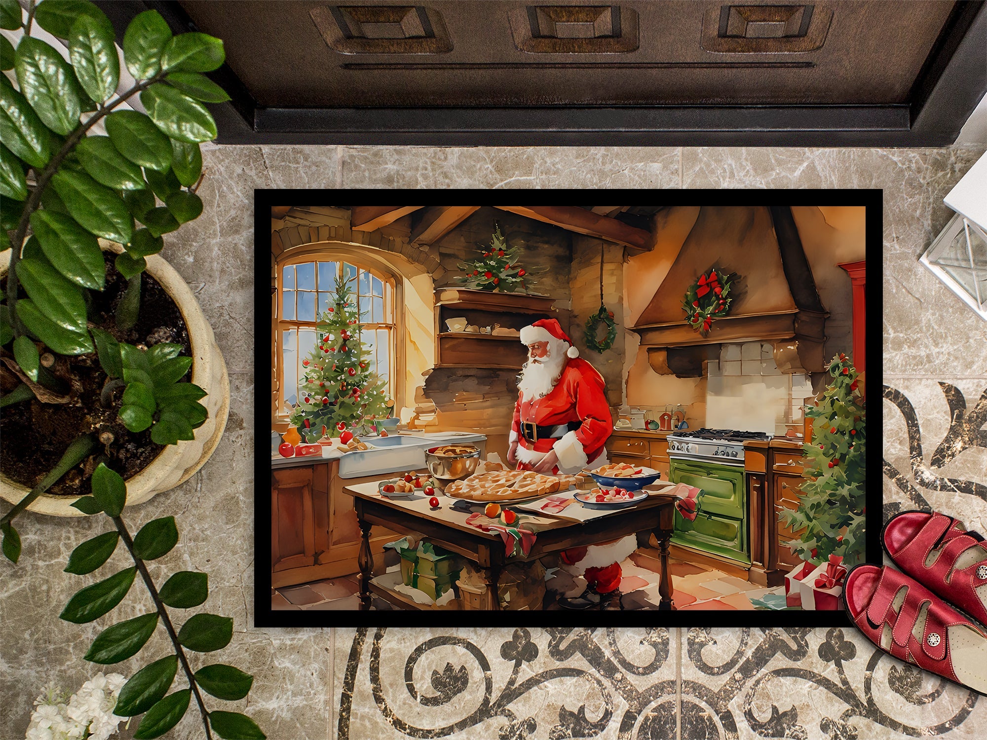 Cookies with Santa Claus Father Christmas Doormat-24x36 Indoor / Outdoor Rug | Made in USA