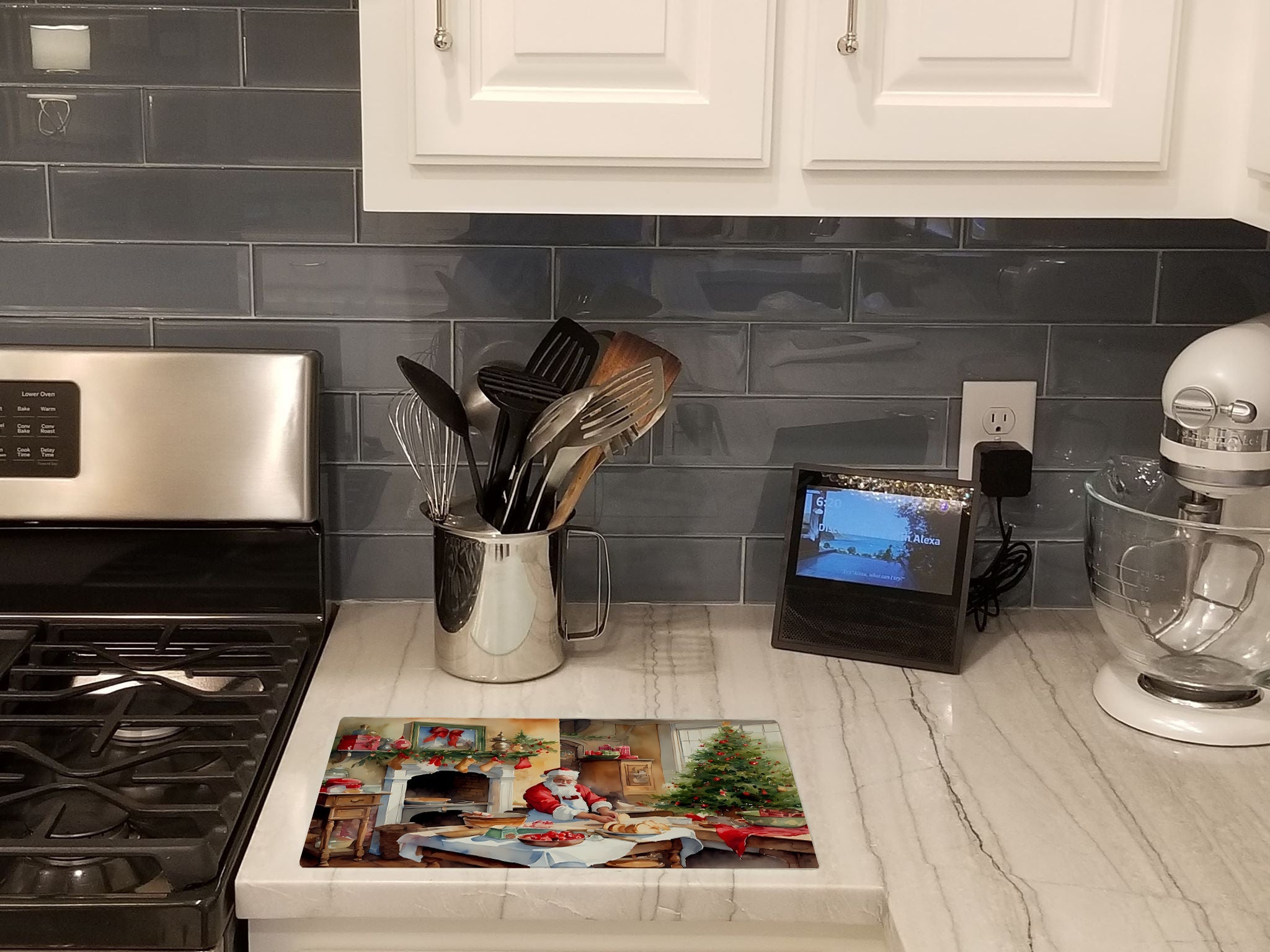 Decorate your space with our Christmas Santa Claus artwork on a Cutting Board. Introduce your kitchen to the vibrant, large Decorative Glass Cutting Board from Caroline's Treasures. Crafted from resilient tempered glass, this board is not only a utilitarian necessity but also a colorful art piece. With its generous dimensions of 15 inches in height and 12 inches in length, it offers ample space for all your cutting needs. Every piece showcases captivating artwork from distinguished artists, bringing an aesthetic edge to your kitchen. Beyond its attractive design, this cutting board ensures your countertop stays pristine and unscathed, owing to its heat-resistant properties. Engineered with user convenience in mind, it features non-skid feet for stability, and rounded corners for additional safety. Its robust construction renders it virtually unbreakable, guaranteeing longevity. The board comes with protective feet bumpers, maintaining its position during use. This product is recommended to be hand washed only. Proudly printed and assembled in the United States, this cutting board exemplifies superior craftsmanship. With Caroline's Treasures' Decorative Glass Cutting Board, you're investing in a blend of functionality and artistic flair.