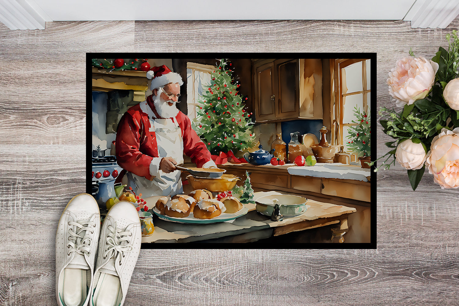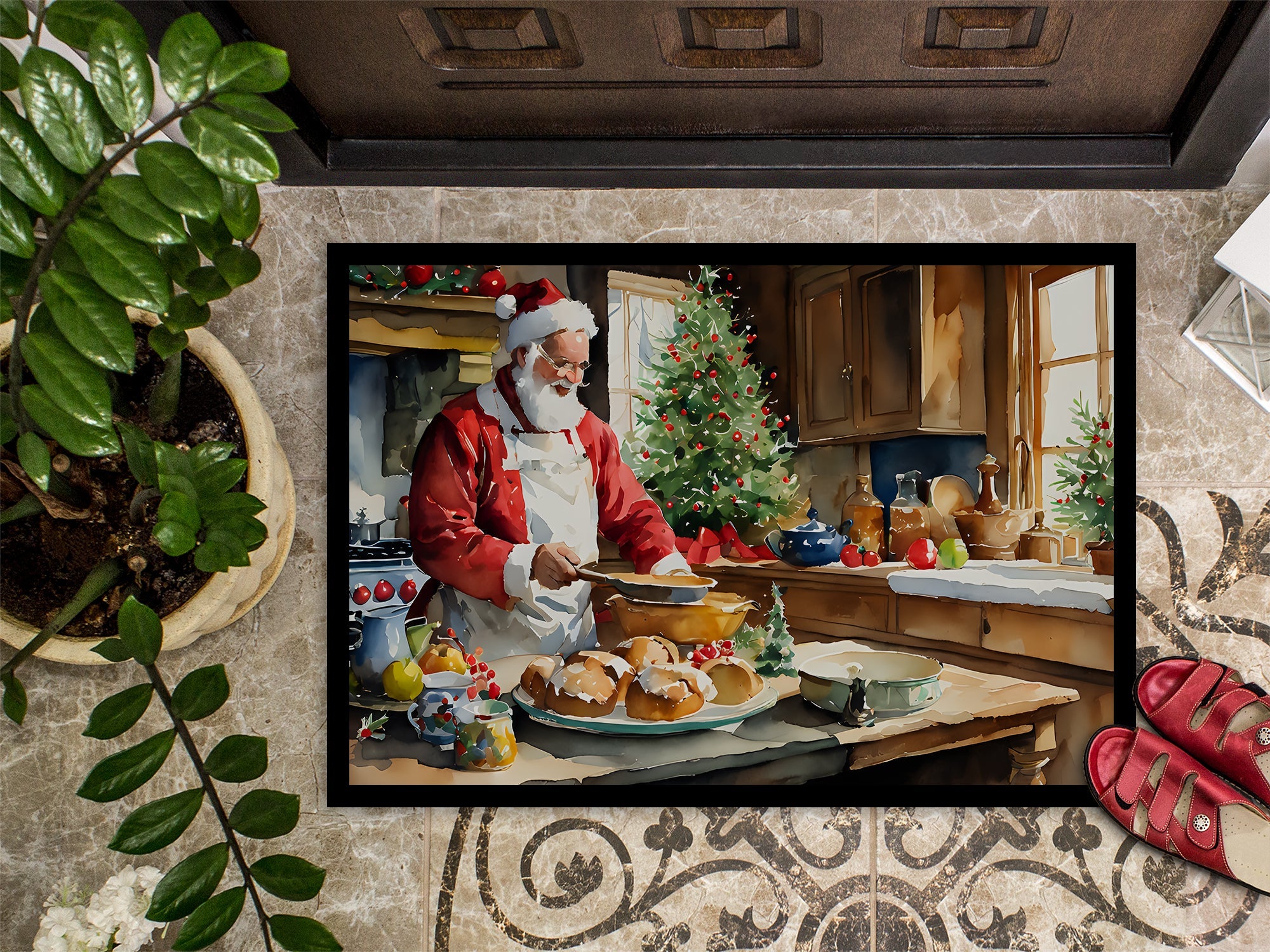 Decorate your space with our Christmas Santa Claus Weihnachtsmann artwork on a Doormat. Welcome your guests in style with our Artwork Door Mat, designed to withstand almost any weather condition. This mat, measuring approximately 18 by 27 inches, is held together by durable black binding tape. Its top layer, composed of polyester felt, is dyed with the eye-catching image you see on the mat. A few layers below provide the mat with stability, while its rubber bottom is stamped to help prevent slipping and ensures safety. Our mat works wonderfully as both an indoor or outdoor door mat. For cleaning, simply hose it off with water or use a power washer - no need for any cleaner that produces suds. Avoid scrubbing with a brush, instead, opt for the vacuum on floor setting. Designed manufactured and printed in the USA, this mat is a perfect addition to your porch, outdoor kitchen, entryway, or any indoor space. Its unique design makes it a charming decorative rug that greets your guests and adds a stylish touch to your home decor.
