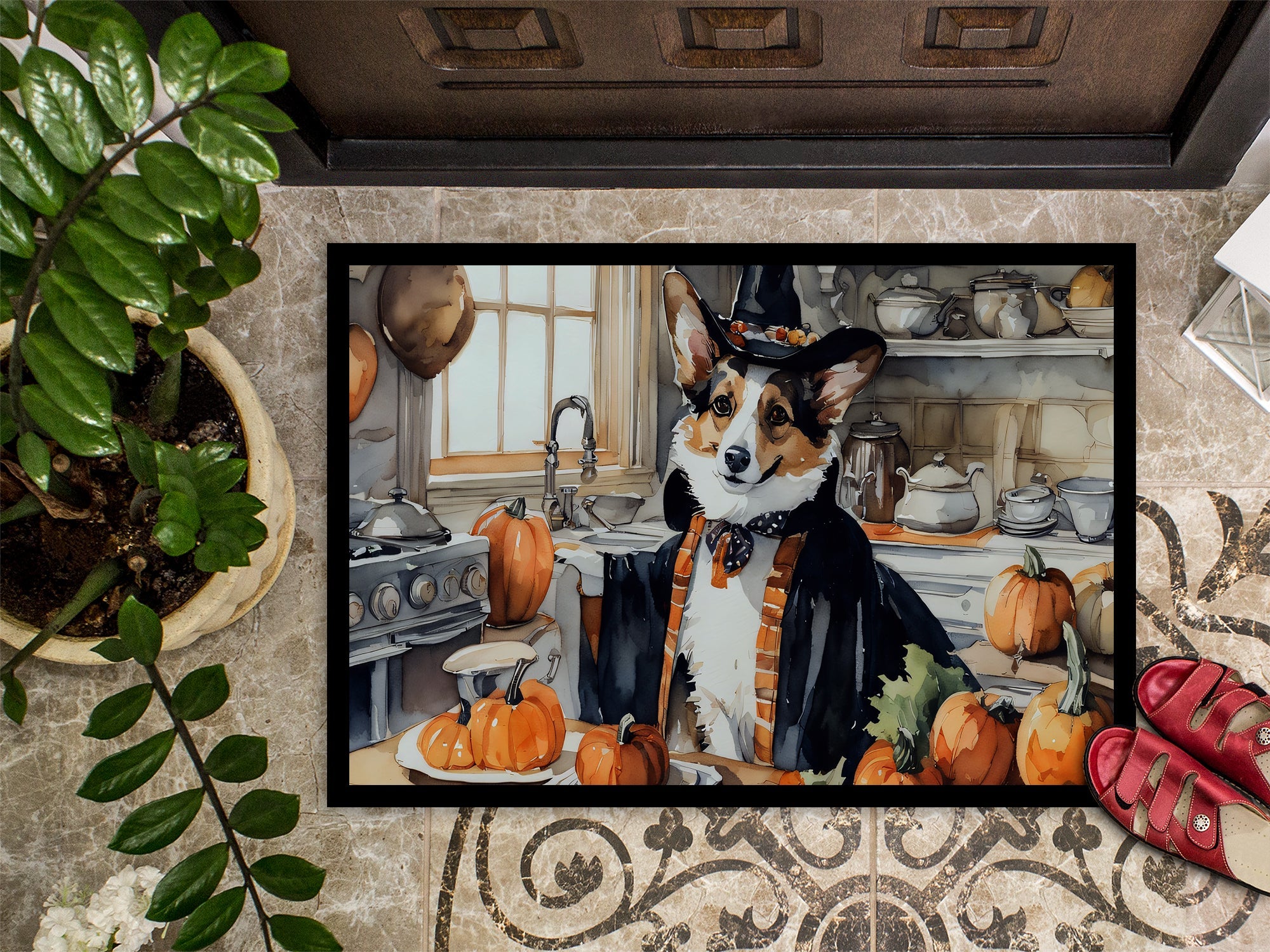 Decorate your space with our Halloween Corgi artwork on a Doormat. Bring a bit of Fall into your home with a Fall Doormat. Welcome your guests in style with our Artwork Door Mat, designed to withstand almost any weather condition. This mat, measuring approximately 24 by 36 inches, is held together by durable black binding tape. Its top layer, composed of polyester felt, is dyed with the eye-catching image you see on the mat. A few layers below provide the mat with stability, while its rubber bottom is stamped to help prevent slipping and ensures safety. Our mat works wonderfully as both an indoor or outdoor door mat. For cleaning, simply hose it off with water or use a power washer - no need for any cleaner that produces suds. Avoid scrubbing with a brush, instead, opt for the vacuum on floor setting. Designed manufactured and printed in the USA, this mat is a perfect addition to your porch, outdoor kitchen, entryway, or any indoor space. Its unique design makes it a charming decorative rug that greets your guests and adds a stylish touch to your home decor.